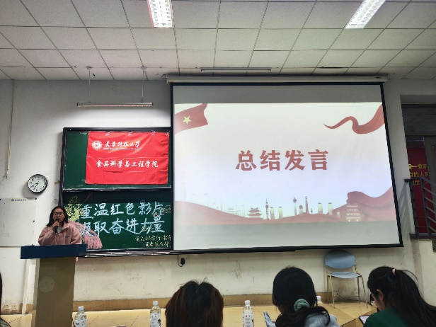 为了深入学习贯彻党的二十大精神,营造浓厚的党史学习教育氛围,提高同学们的团队协作能力与表达能力,丰富校园生活。2023年11月12日18:30,食品科学与工程于图书馆第七、第八阶梯教室举行了“重温红色影片,汲取奋进力量”影片分享活动。出席本次活动的嘉宾有:食品科学与工程学院23届团委学生会主席团和23届食品创新工坊主席团。