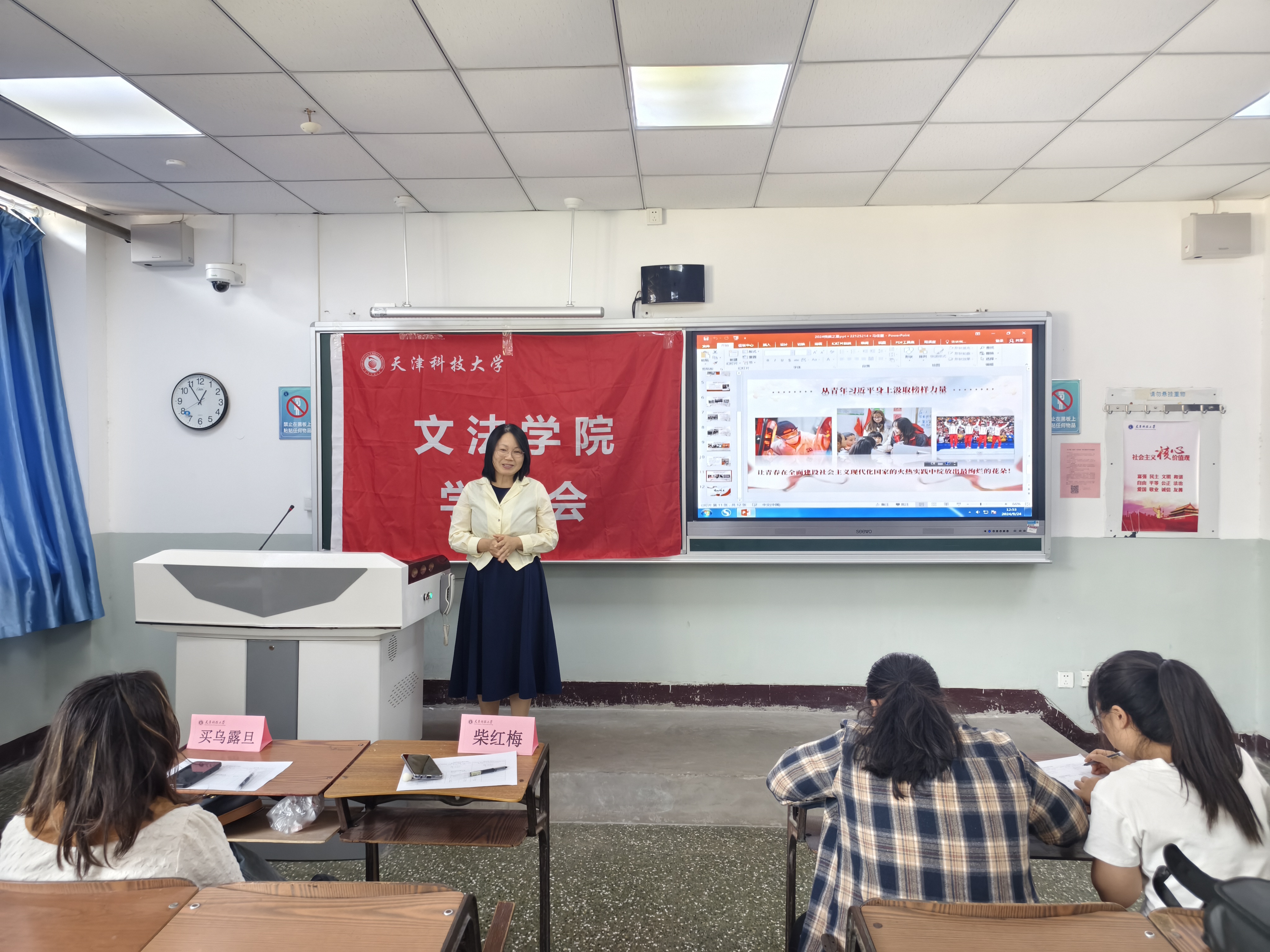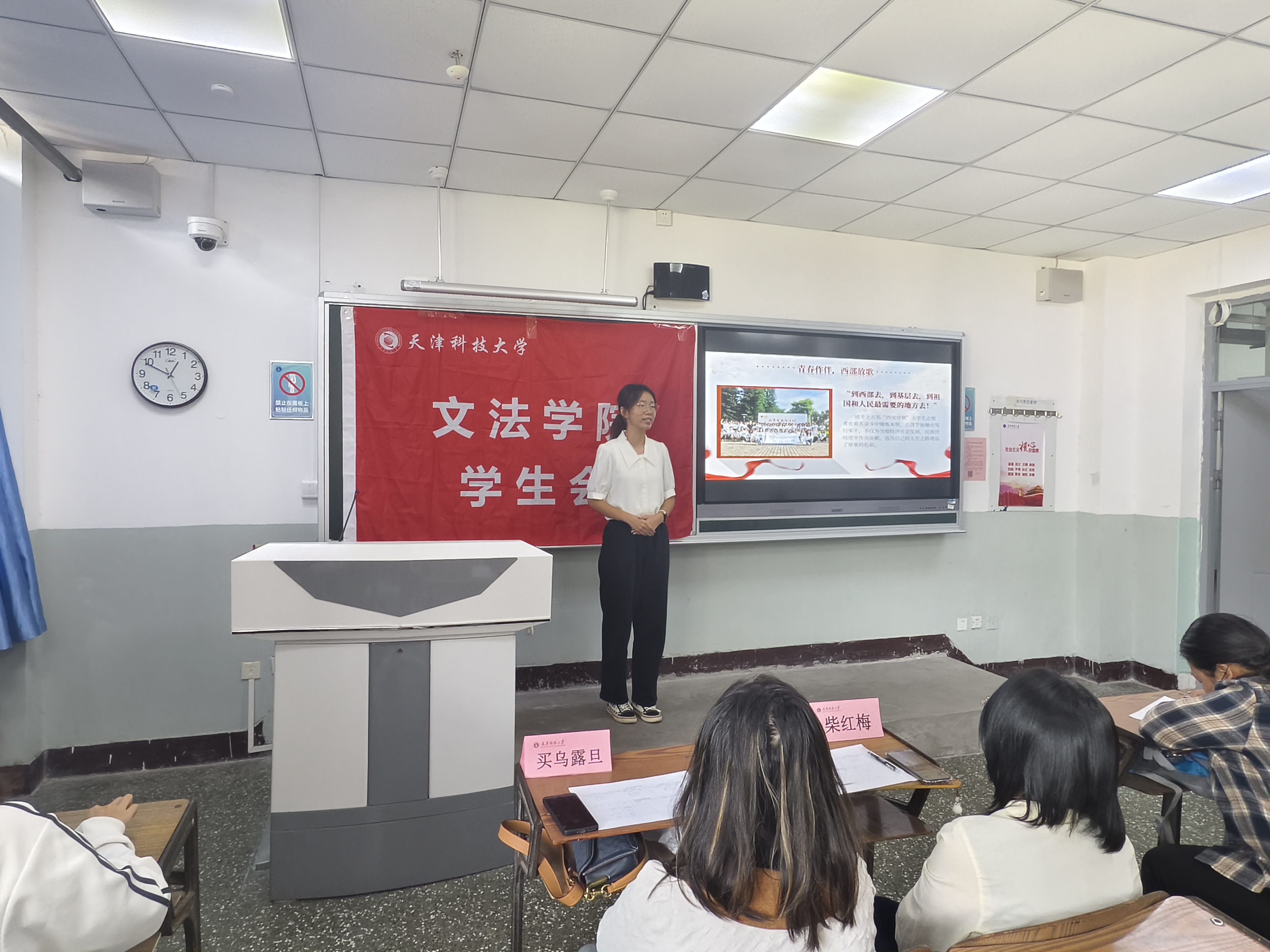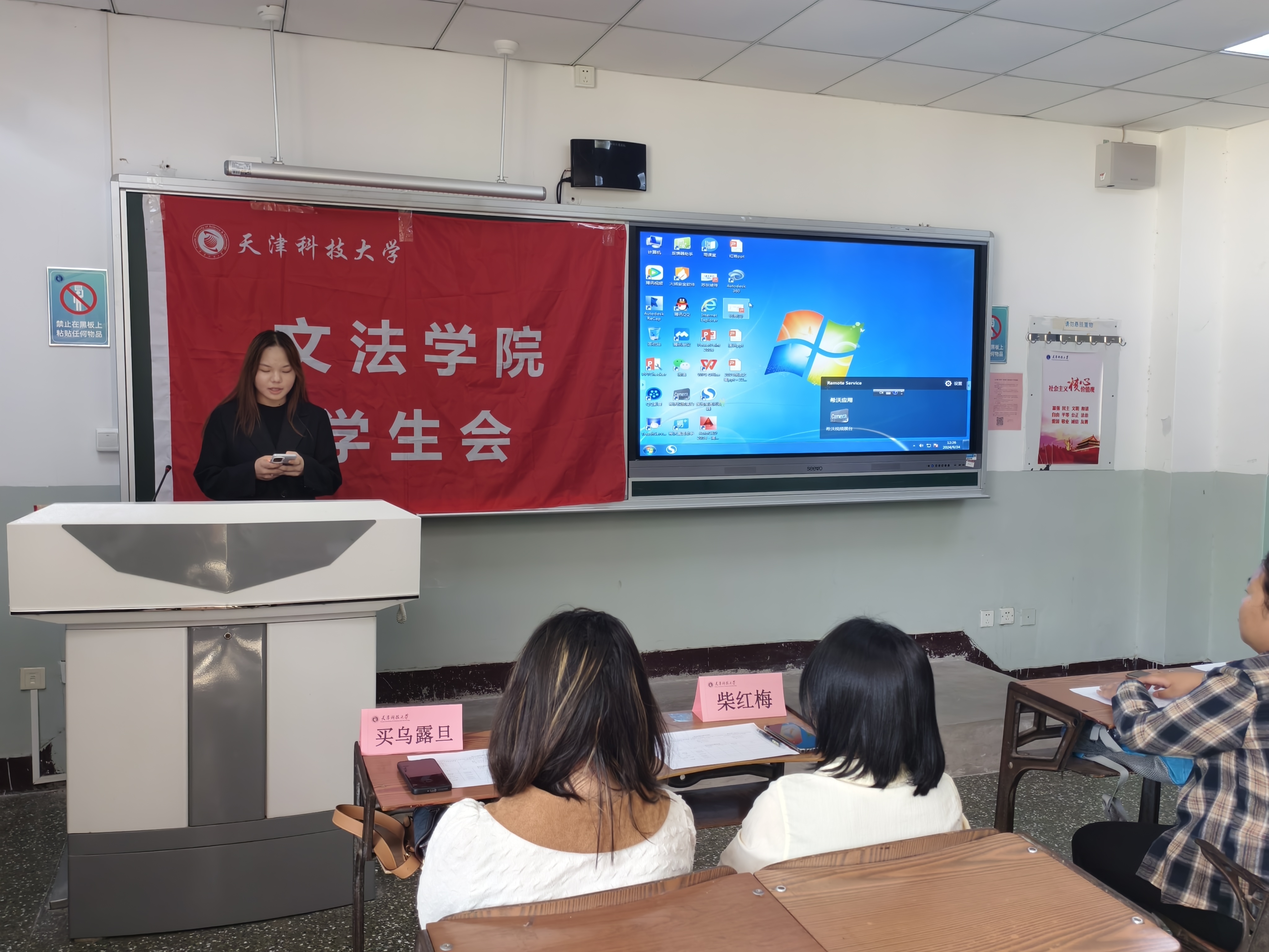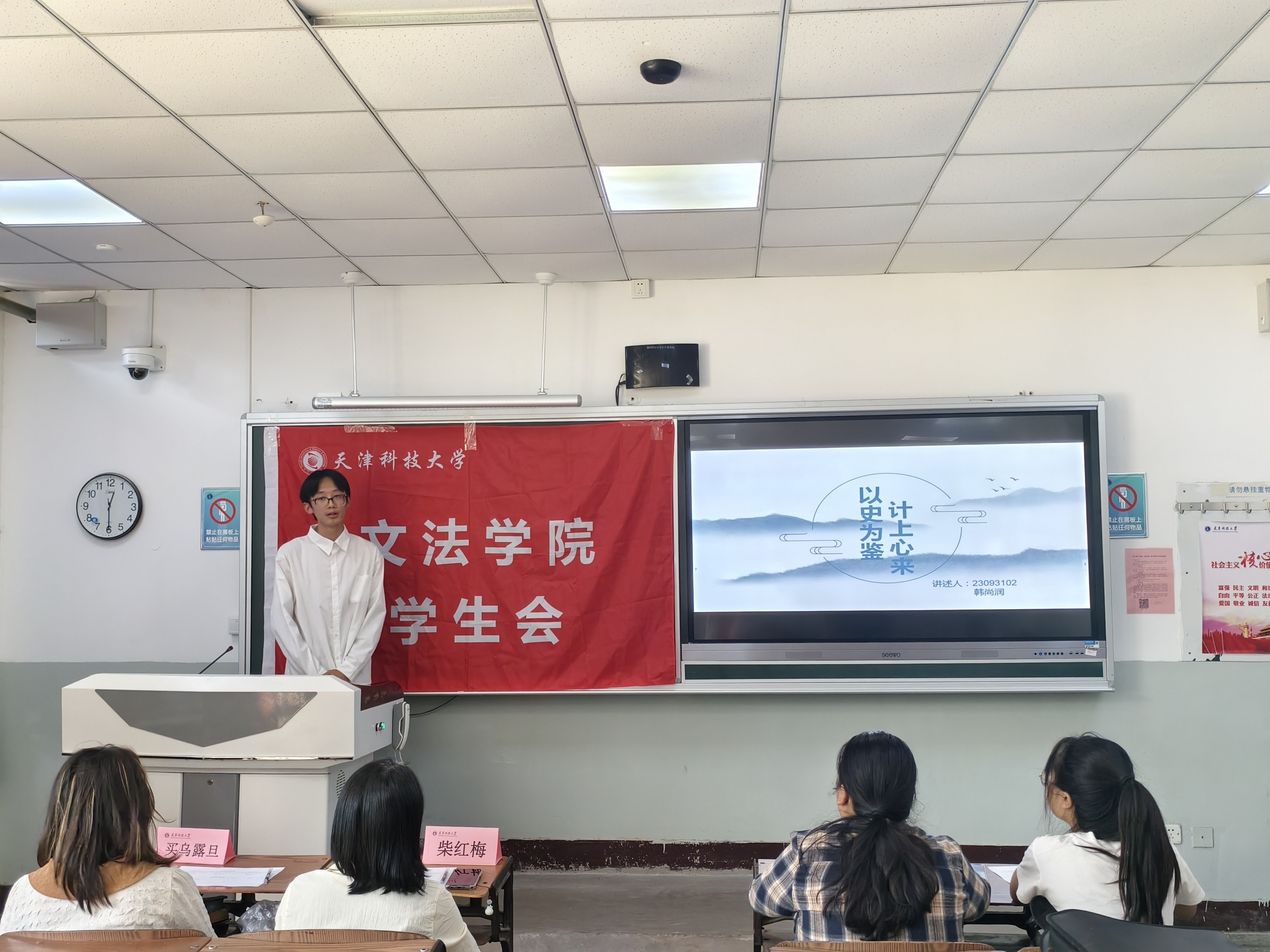 为深刻领会习近平总书记视察天津重要讲话精神,全面贯彻落实党的二十大关于深化全民阅读活动的重要部署,推进实施学校“先锋计划”建设需求,文法学院认真落实《天津市青少年学生读书行动实施方案》,组织开展丰富的校园读书节活动,有针对性地指导学生阅读相关课内外读物,文法学院于9月24日中午在17号楼103教室召开“以书为伴,不负韶华”主题演讲比赛活动。文法学院汉语国际教育专业教师柴红梅老师、文法学院23级辅导员买乌露旦老师、晟文协会主席李楠、文法学院学生社团管理中心主席刘芊奕、刘俊娜担任本次比赛的评委。