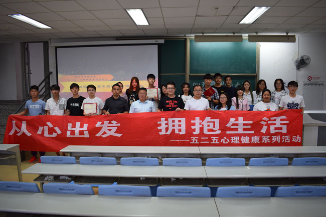 为更好的帮助学生以积极向上的心态面对生活,经济与管理学院新闻中心开展“心之所向•理想人生”五二五心理健康系列活动并于2018年5月28日中午12点30分在图书馆第十四阶梯教室举行此次心理微视频大赛的颁奖仪式。出席本次活动的老师有:经管学院团委书记霍士磊老师,2015级辅导员木合塔老师,2016级辅导员张新宇老师、李白雪老师,2017级辅导员王伟老师。