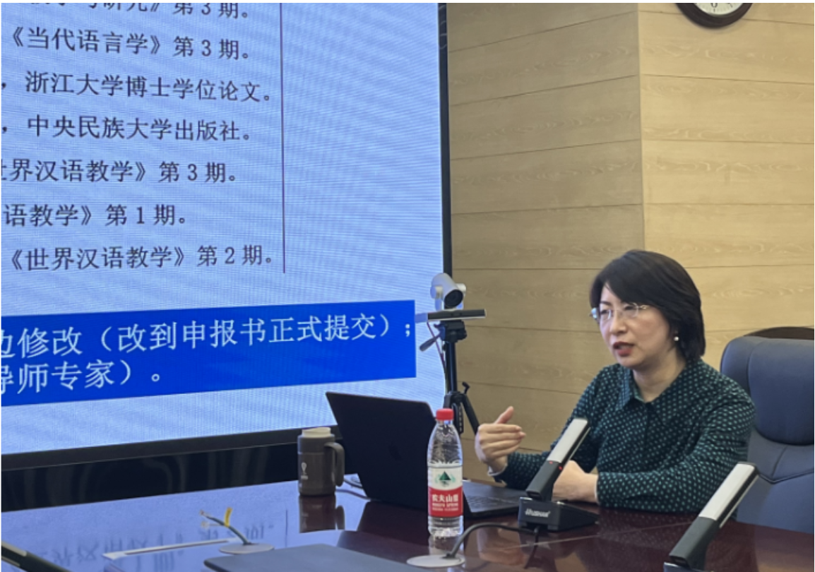 活动伊始,夏南老师对本次沙龙进行了提纲挈领的介绍。紧接着,张海涛老师开启主题分享。她深入剖析国社科申报的要点,并从选题的精准确定、研究内容的精心设计,到研究方法的恰当选择,每一个环节都结合自身丰富的经验与实际案例,进行了鞭辟入里的讲解,为参会教师提供了极具价值的参考。