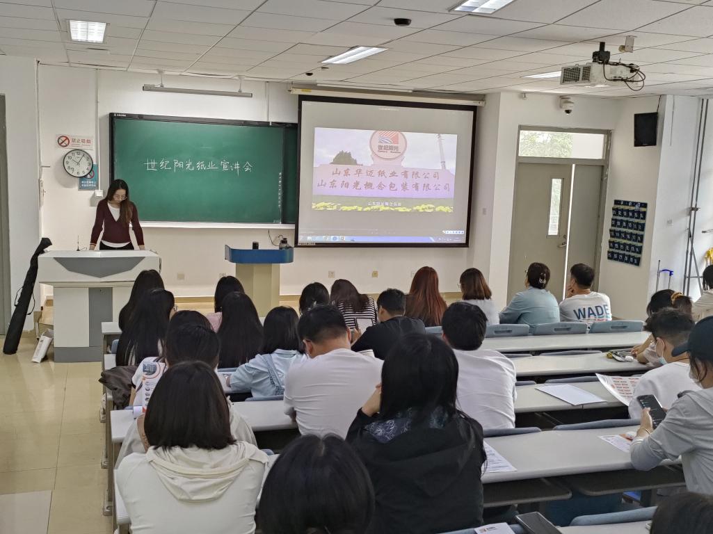 为进一步加强校企合作,为即将步入职场的毕业生提供优质的就业机会,轻工学院于2024年9月27日邀请山东世纪阳光纸业集团有限公司来校举办校园招聘宣讲会,吸引了众多2025届毕业生前来参加。