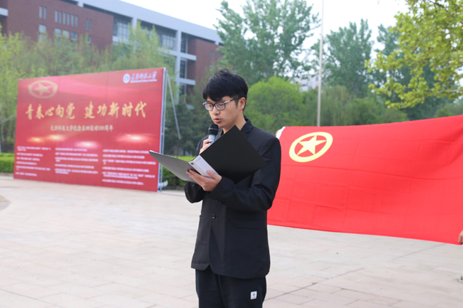 为弘扬爱国主义精神,增强中华民族的凝聚力,激发青年实现中华民族伟大复兴中国梦的精神力量。计算机学院于2019年4月29日,在天津科技大学泰达校区中院国旗台前,举行“以青春心向党,建功新时代”特别主题团日活动。2017级辅导员宋婉玉、2018级辅导员袁锟、秦锋斌老师出席,17、18级各班学生代表参加。