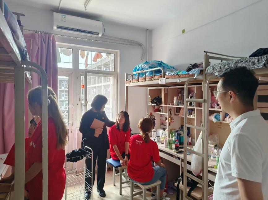 走访过程中,领导们悉心询问了同学们的入学适应情况,并对同学们反映的空调不凉等生活上问题及时地提出方案进行解决,确保同学们能在宿舍里住得舒心、开心。同时,领导及辅导员们也勉励新生们要珍惜美好时光,做好人生规划,勇于面对未来的挑战,在大学四年的学习生活中学有所获、全面发展。