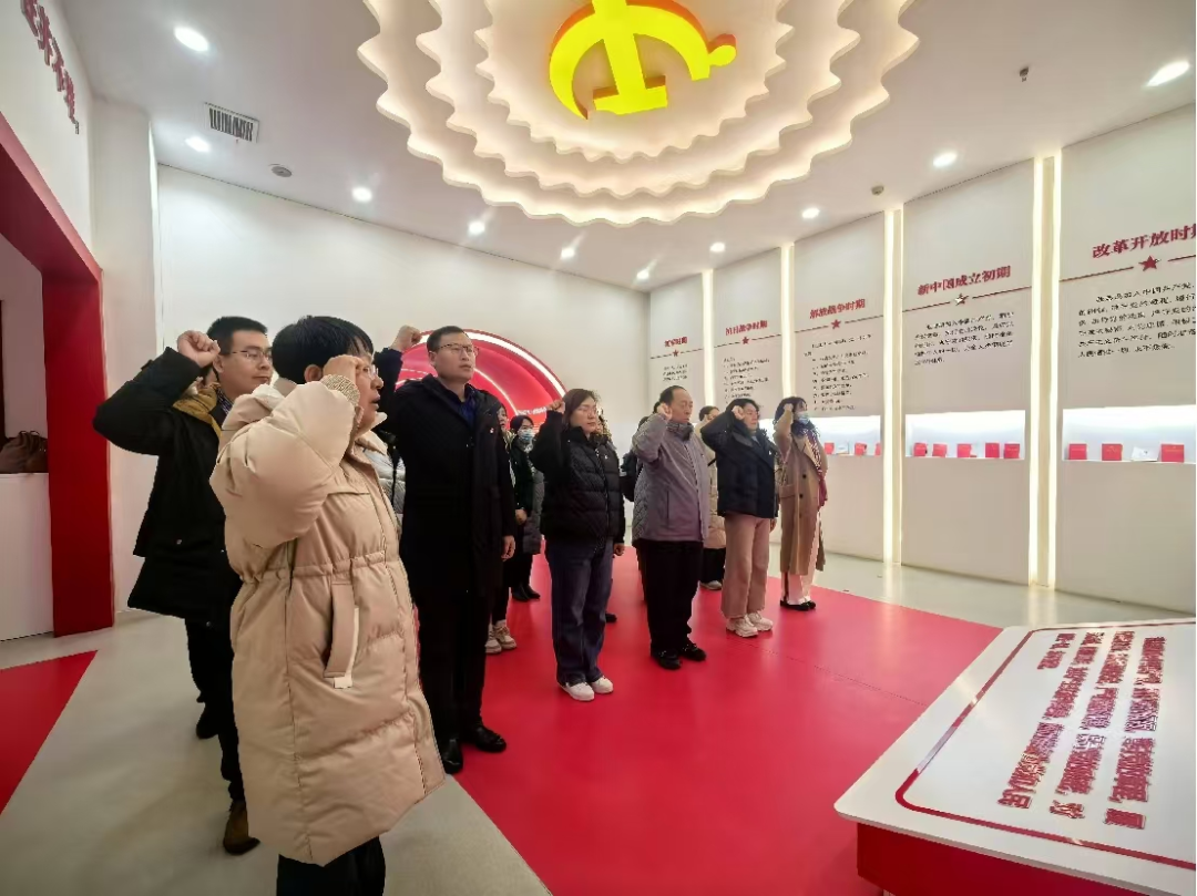 在宣誓厅中,全体党员庄严肃立,面向党旗重温入党誓词,铮铮誓言,掷地有声,表达了对理想信念的坚定追求和对党的无限忠诚。
