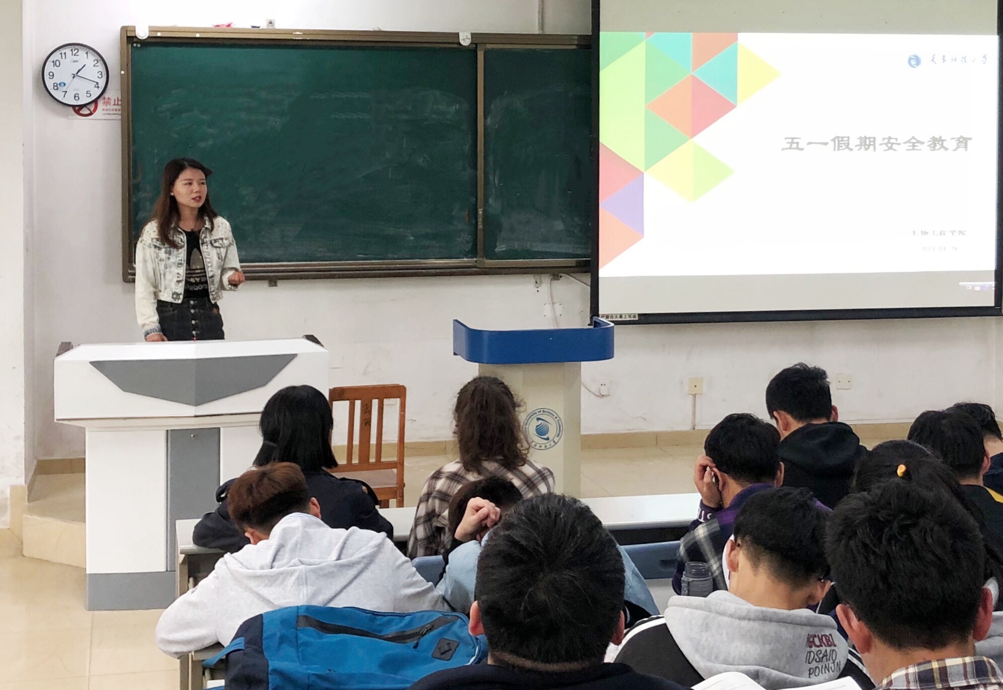为进一步做好五一劳动节假期及近期学生安全教育工作,生物工程学院本科各年级于2019年4月28日至4月30日在滨海中校区开展关于五一假期安全主题教育会。各年级通过主题班会或年级会的形式开展教育工作,本科各年级全体学生参加。