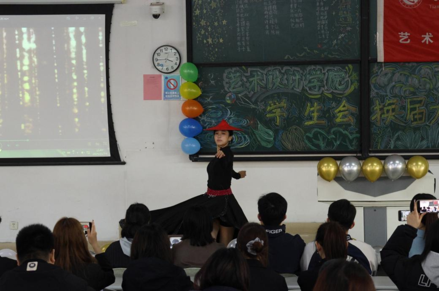 换届大会结束后,学生会各职能部门进行了文艺节目展演,节目形式多样、内容活泼,体现了艺术设计学院学子多才多艺、朝气蓬勃的精神风貌。
