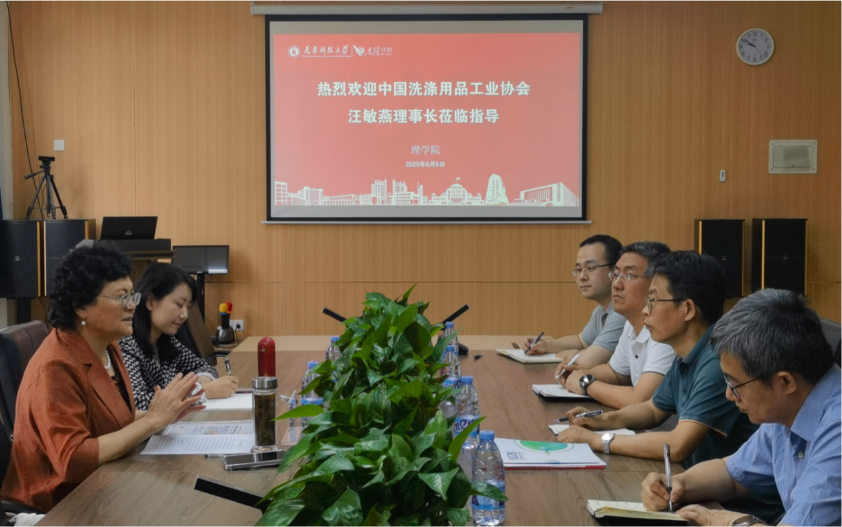 6月5日,中国洗涤用品工业协会理事长汪敏燕、副秘书长强雯一行到访天津科技大学理学院。理学院院长樊志、副院长陈京、教师袁冰和化工与材料学院教授张晨曦参加了交流座谈。