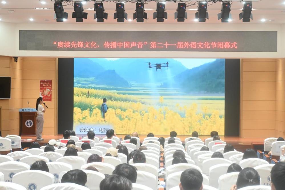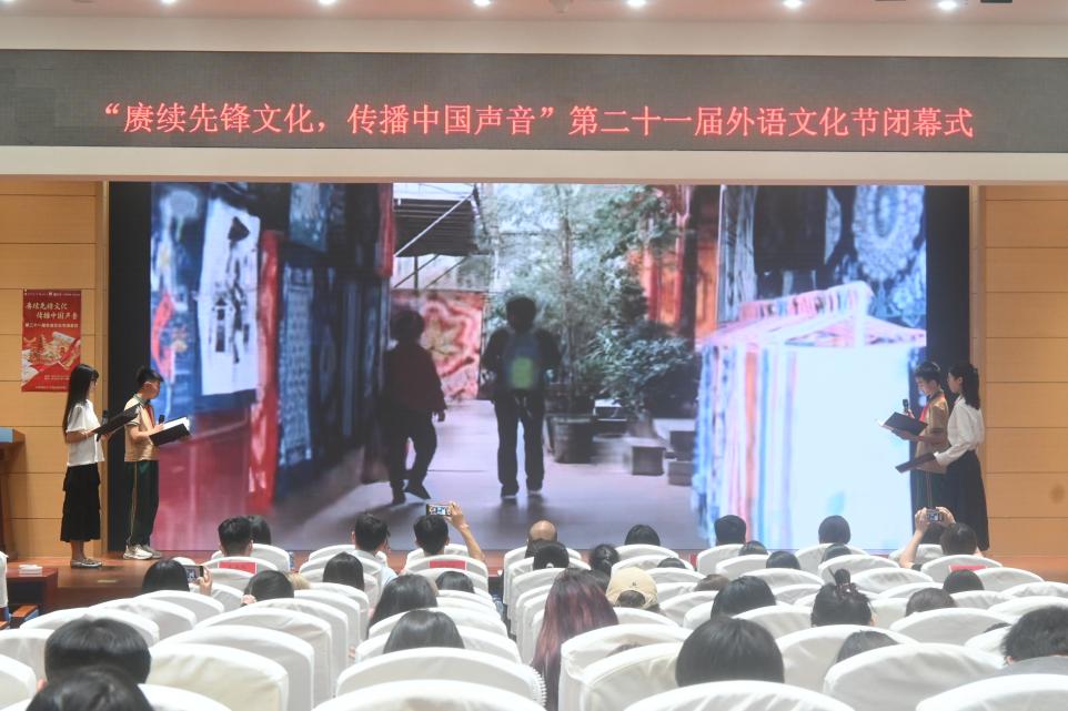 外国语学院院长潮洛蒙总结致辞。他表示本次“赓续先锋文化,传播中国声音”外语文化节是响应学校“先锋计划”,着力培养“先锋文化”的生动实践,各项活动不仅是外语学习和实践平台,更是文化交流与文明互鉴的舞台。活动中同学们勇于实践、追求真知的劲头,正是涵养“先锋精神”的核心要义。他对同学们提出了三点期望:一是以“先锋精神”为指引,既要夯实基础,更要勇于创新;二是既要放眼全球,更要胸怀家国;三是既要知行合一,更要服务奉献。带着外语人的使命担当,在跨文化沟通中展现出中国青年的时代风采。