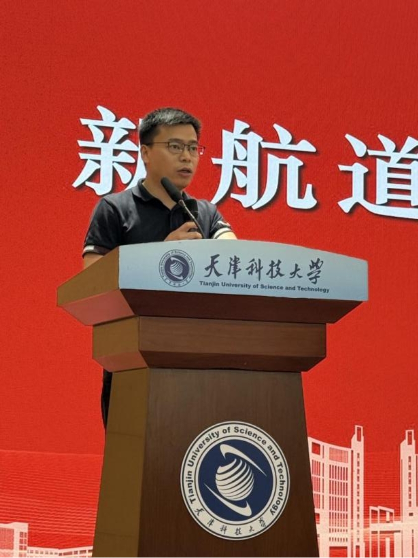新航道教育集团副总裁雷丰奎上台分享校企合作经验。从外语竞赛指导到跨文化交流活动搭建,企业力量为外语学习注入新活力,让“传播中国声音”不再只是校园课题,更有了接轨社会、走向世界的实践路径。