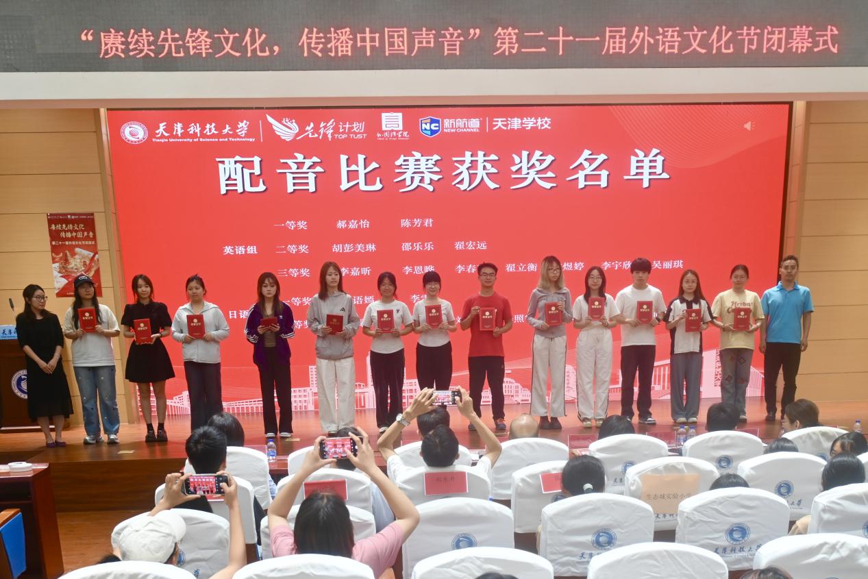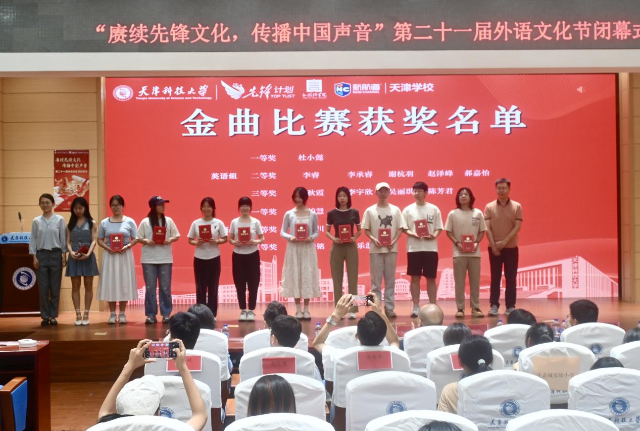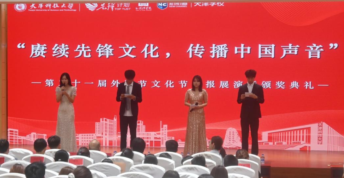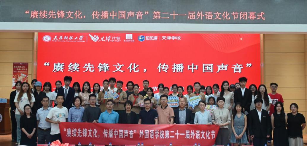 6月11 日中午,外国语学院第二十一届外语文化节汇报展演暨颁奖典礼在滨海校区逸夫楼报告厅顺利举办。本次活动以“赓续先锋文化,传播中国声音”为主题,将先锋精神内涵融入各个环节。学院领导班子、新航道国际教育集团天津学校相关负责人、生态城实验小学师生代表、各专业系主任、学生办公室教师队伍及各年级师生共计200余人共同参与见证。