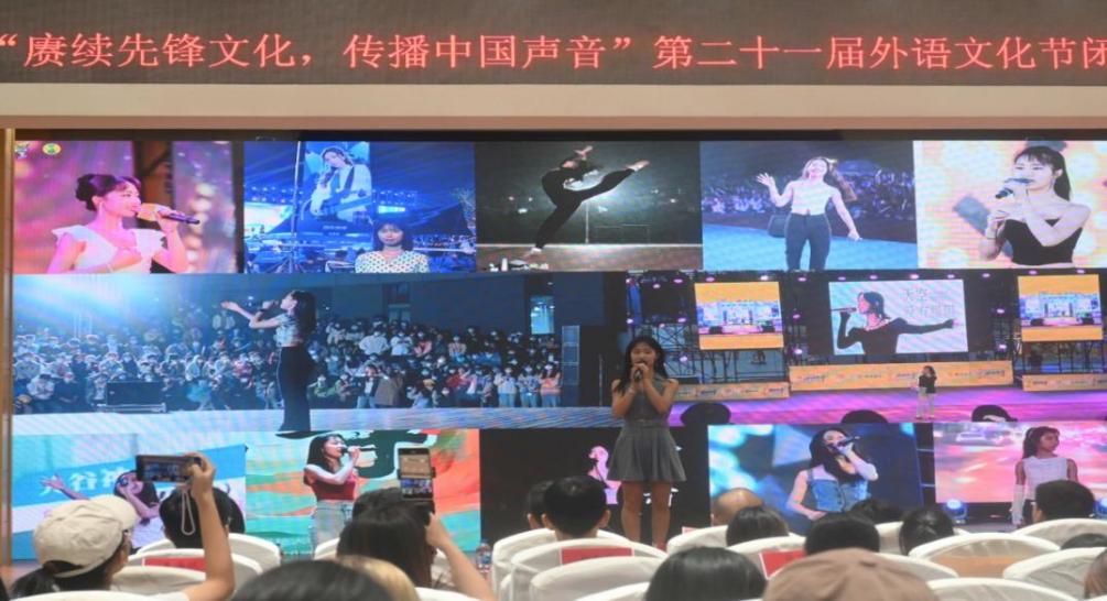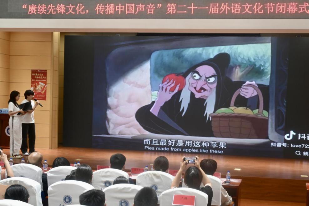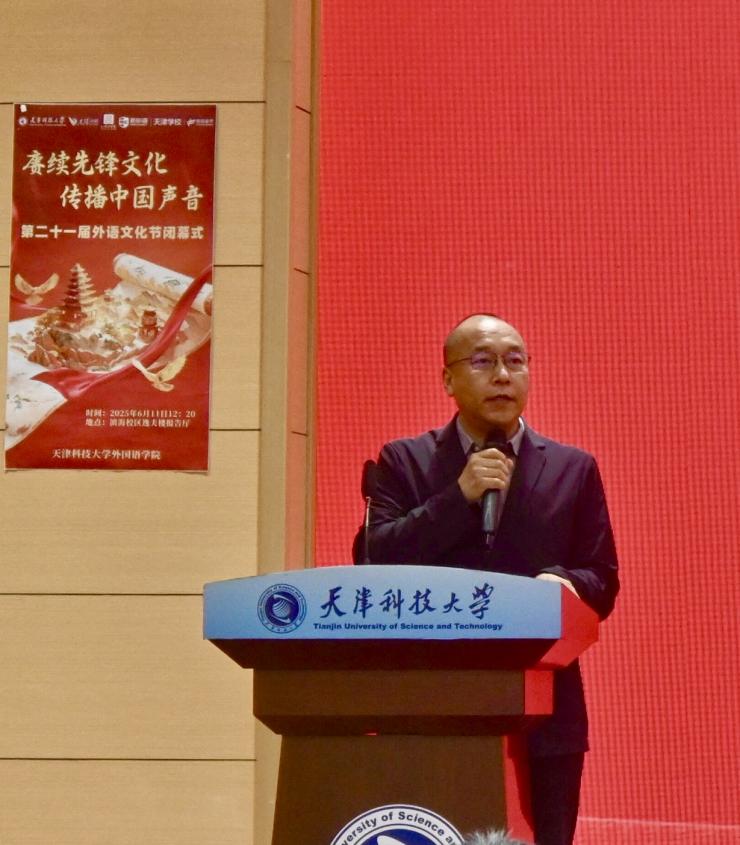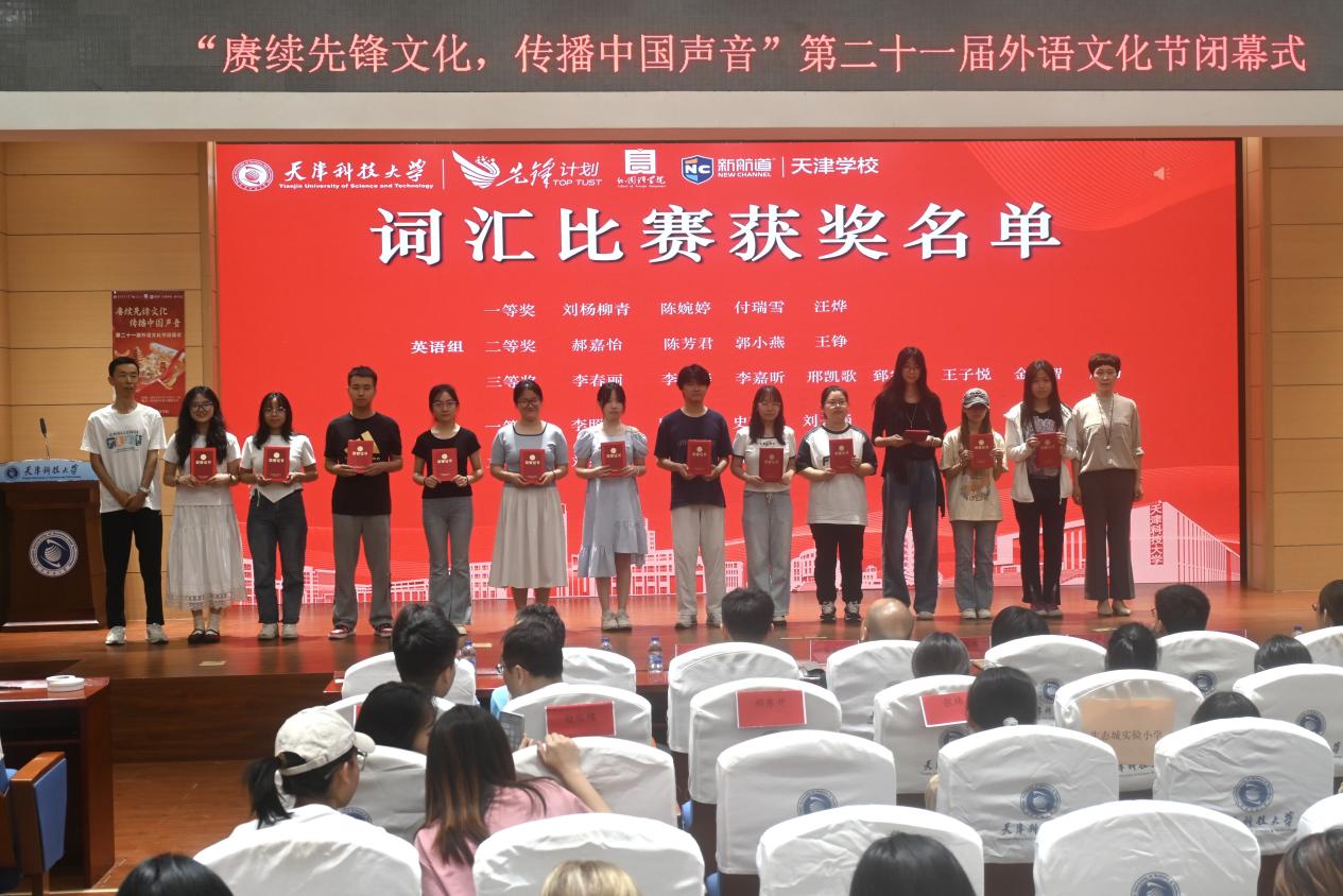 6月11 日中午,外国语学院第二十一届外语文化节汇报展演暨颁奖典礼在滨海校区逸夫楼报告厅顺利举办。本次活动以“赓续先锋文化,传播中国声音”为主题,将先锋精神内涵融入各个环节。学院领导班子、新航道国际教育集团天津学校相关负责人、生态城实验小学师生代表、各专业系主任、学生办公室教师队伍及各年级师生共计200余人共同参与见证。