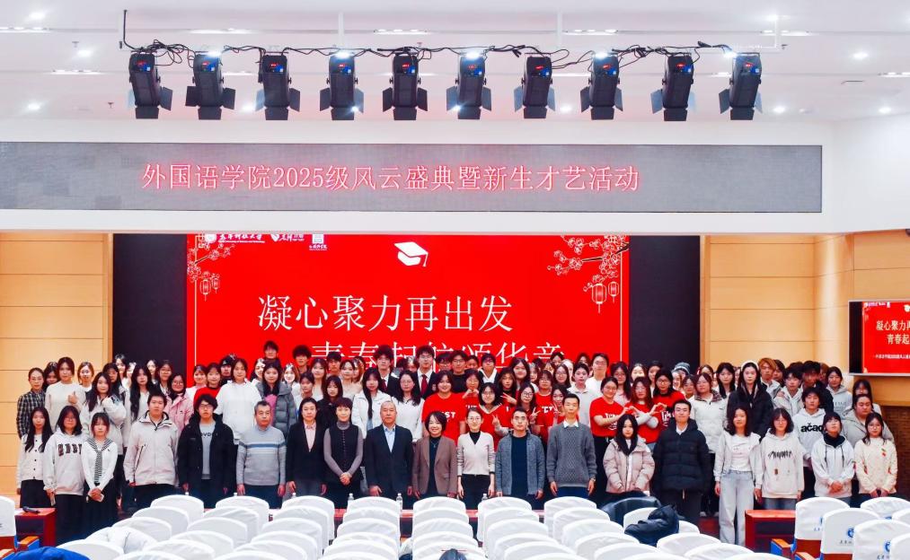 为凝聚新生力量,展示青春风采,促进班级文化建设,外国语学院于12 月19日在逸夫楼报告厅举办了“凝心聚力再出发 青春起航颂华章”2025级风云盛典暨新生才艺秀活动。外国语学院党政领导、各系部主任、辅导员老师出席本次活动。