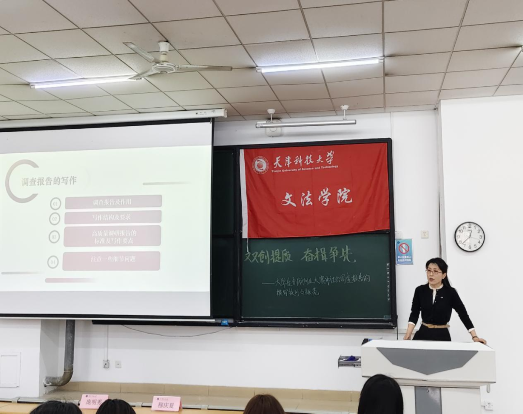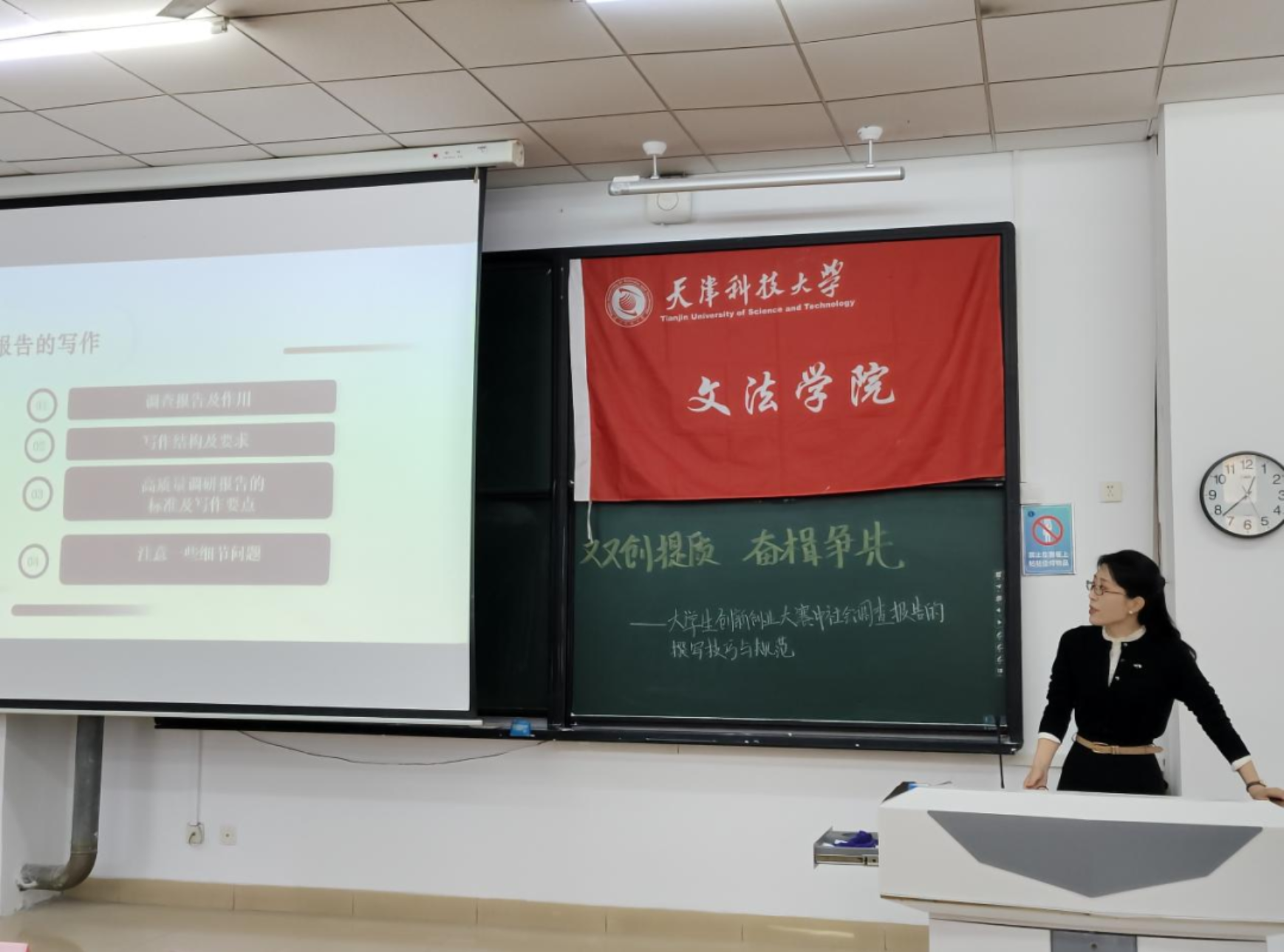 为进一步落实我校“先锋计划”,推进双创提质行动,提升大学生创新创业大赛社会调查报告撰写能力,11月12日13:40在双子楼A111开展创新创业专题讲座。本次讲座由经验丰富的庞明秀老师主讲,吸引了众多文法学院学生积极参与,现场气氛热烈。