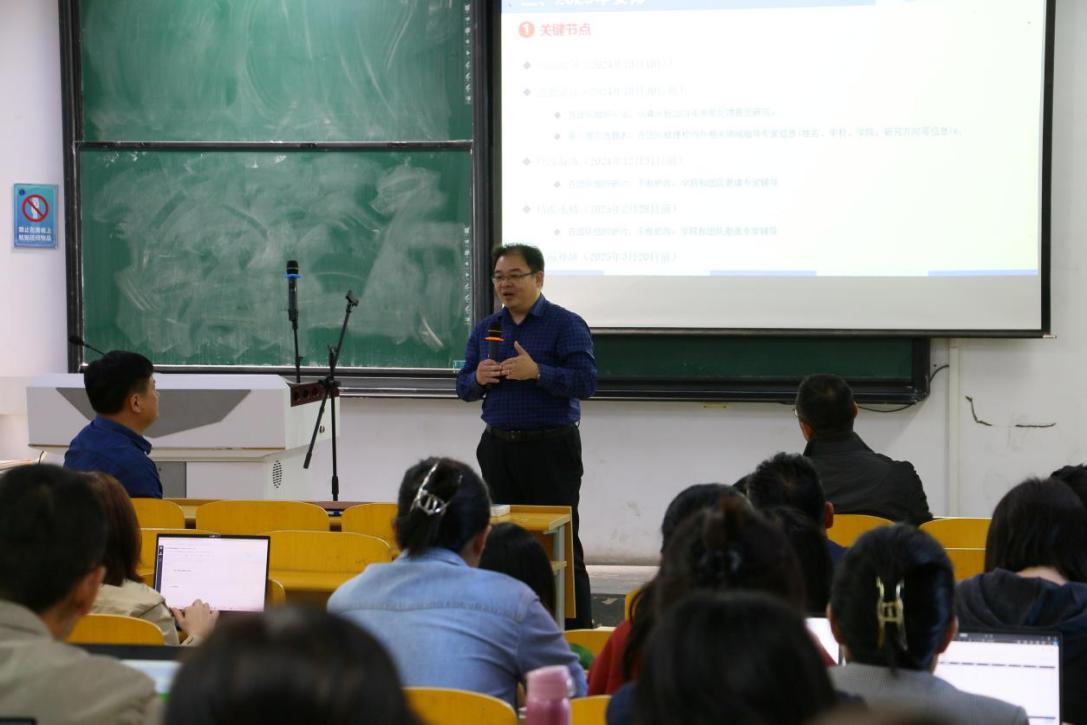 张贤坤院长主要从申报基金的意义、2024年申报情况分析、2025年申报工作安排等三个方面分析介绍学院2024年国家自然基金申报的不足及问题、动员老师们积极申报并提前做好2025年基金申报准备。