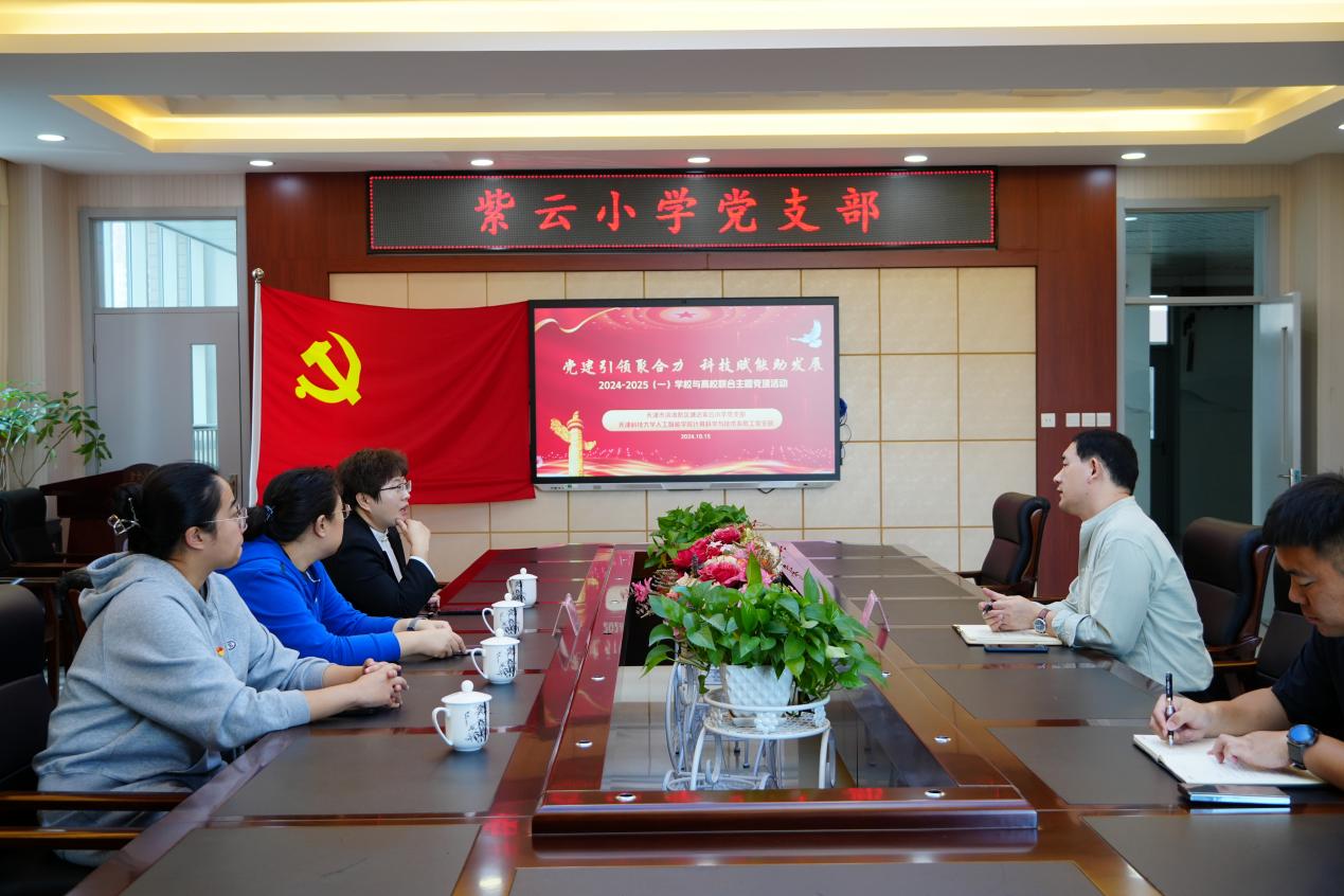 为了深入宣传贯彻落实党的二十届三中全会精神,大力弘扬科学精神,切实提升青少年科学素养,坚持科普发力,进一步推进大中小一体化的信息技术人才培养建设进程,近日,天津科技大学人工智能学院计算机科学与技术系教工党支部与紫云小学党支部开展共建特色党日活动,开展了校园科普宣讲与教学座谈。