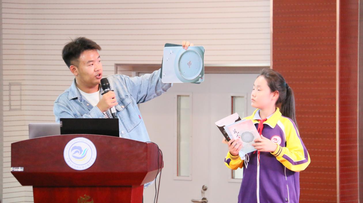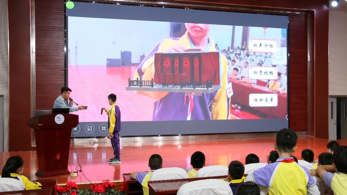 为了让孩子们更加直观地感受人工智能的魅力,主讲人以人工智能学院优秀学生作品为案例,通过增强现实(AR)技术实现的特色文创产品让孩子们在了解中华传统文化的同时切实感受人工智能的瑰丽世界。学生们纷纷表示未来要为数字中国贡献一份自己的力量。在宣讲的尾声,主讲人鼓励孩子们要保持对科学的热情与好奇心,努力学习知识,将来成为推动科技发展的栋梁之材。