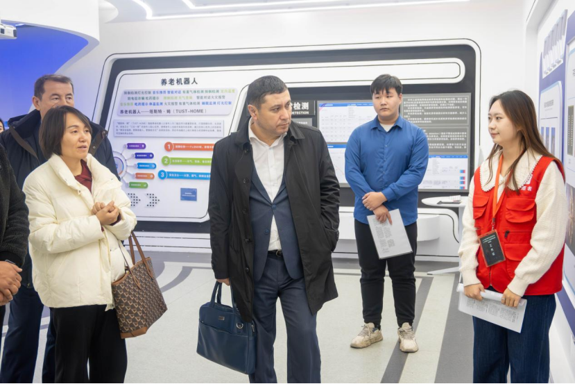 为深入了解人工智能科技创新成果,促进中外友好合作交流,11月18日下午4时,乌兹别克斯坦友人来到天津科技大学,参观人工智能教育科普基地及人工智能学院成果展示馆。