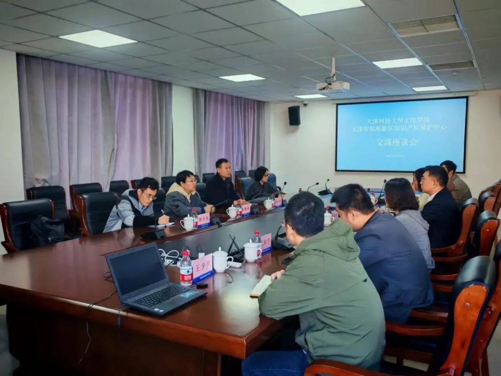 滨海新区知识产权保护中心的负责人向天津科技大学文法学院的各位领导及教师代表介绍了滨海新区知识产权保护中心的成立与发展概况,并针对近年来取得的建设成果进行了简单介绍。负责人指出,滨海新区知识产权保护中心与天津科技大学长期保持着较为紧密的合作关系,并在工作上有着较为频繁的接触,但在学院方面接触交流不深,也希望通过这次的座谈交流会促进与天津科技大学文法学院的进一步交流与深度合作。滨海新区知识产权保护中心各部门的负责人也展开了介绍。