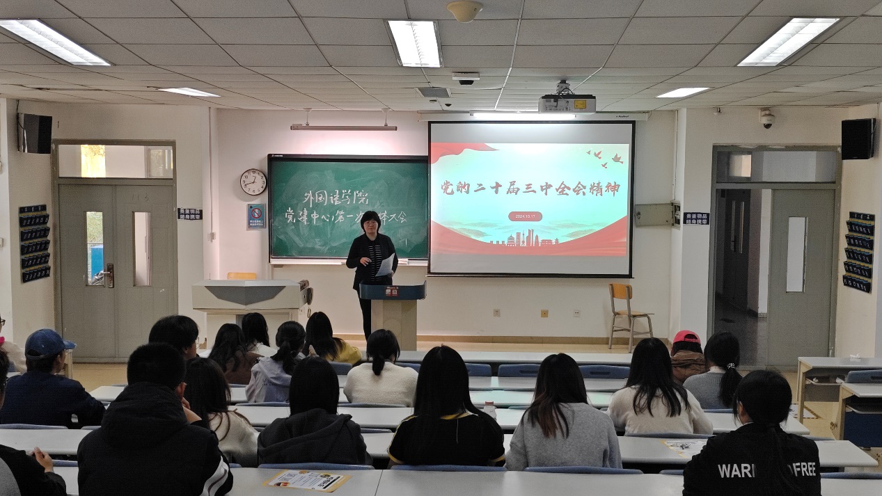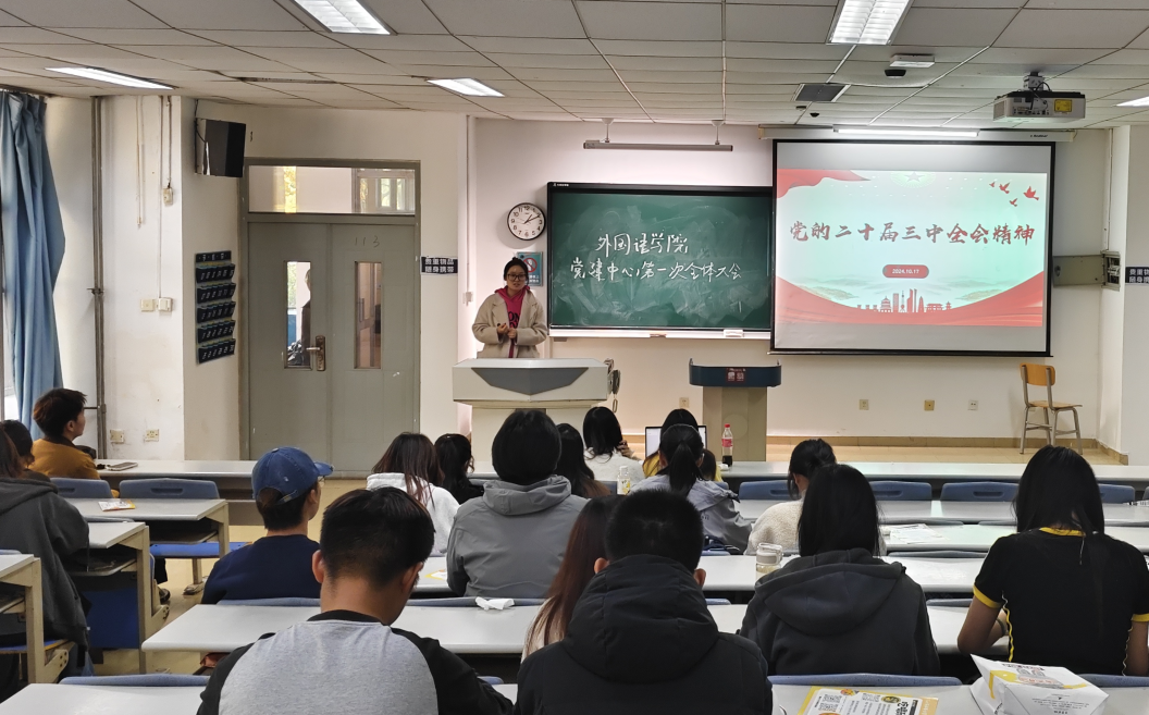 为深入学习贯彻党的二十届三中全会精神,进一步提升学院党建工作的水平、强化学生思想政治教育,外国语学院学生党建中心于10月25日在5号楼113教室成功召开了第一次全体大会。