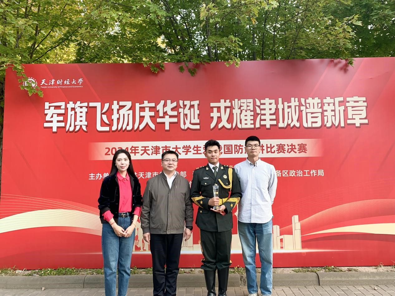 在天津市教育委员会、天津市委宣传部、天津市退役军人事务局、天津市征兵办联合举办的“军旗飞扬庆华诞 戎耀津城谱新章”2024年天津市大学生爱我国防演讲比赛决赛中,我院2022级本科生满建岐荣获普通在校大学生组一等奖。满建岐结合自己作为学校国旗护卫队一员的亲身经历,以《青春铸就国防梦,热血守护家国情》为主题,描述了自己从儿时到成年献身国防的心路历程,用满怀深情的语言和真挚的爱国情感讲述了对家国情怀、时代担当的理解,抒发了对新时代实现中国梦、强军梦的深切感悟。其细腻的故事讲述、饱满的情绪表达、稳健的台风表现赢得了评委和观众的高度评价和一致认可,获得全场最高分,摘得普通在校大学生组的桂冠。