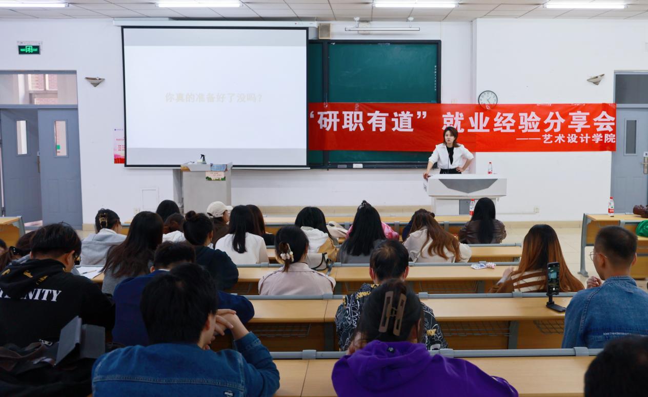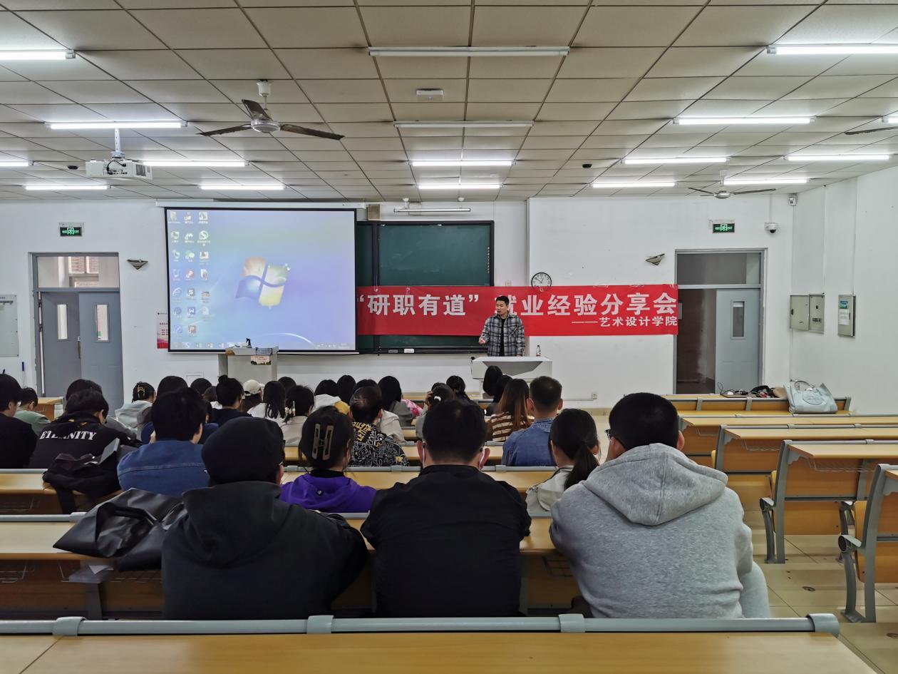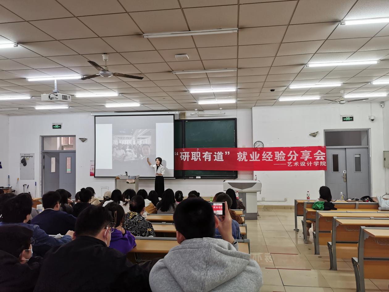 近日,为帮助学院研究生做好未来职业规划,了解更多考公考编的相关知识,艺术设计学院于双子楼A103举办“研职有道”就业经验分享会。活动邀请学院优秀毕业生李金鹏学长和梁辰宇学姐作为主讲人,研究生辅导员高春静老师主持。