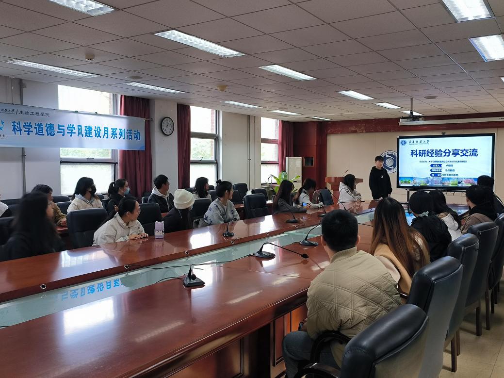 为弘扬科学家精神,助力研究生成长与全面发展,提升研究生科研素养。近日,生物工程学院在滨海校区中院2-208组织开展2024年生物工程学院研究生科学道德与学风建设月主题宣讲第二讲。本次活动邀请年度国家奖学金获得者卢明辉同学,带来了一场题为“科研工具在生物工程领域的应用与实践”的专题讲座。卢明辉结合自己在科研过程中的亲身经验,详细介绍了现代科研工具如何助力科研项目。