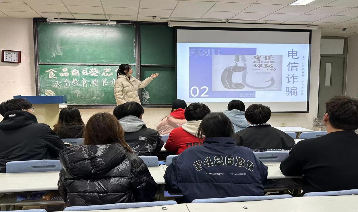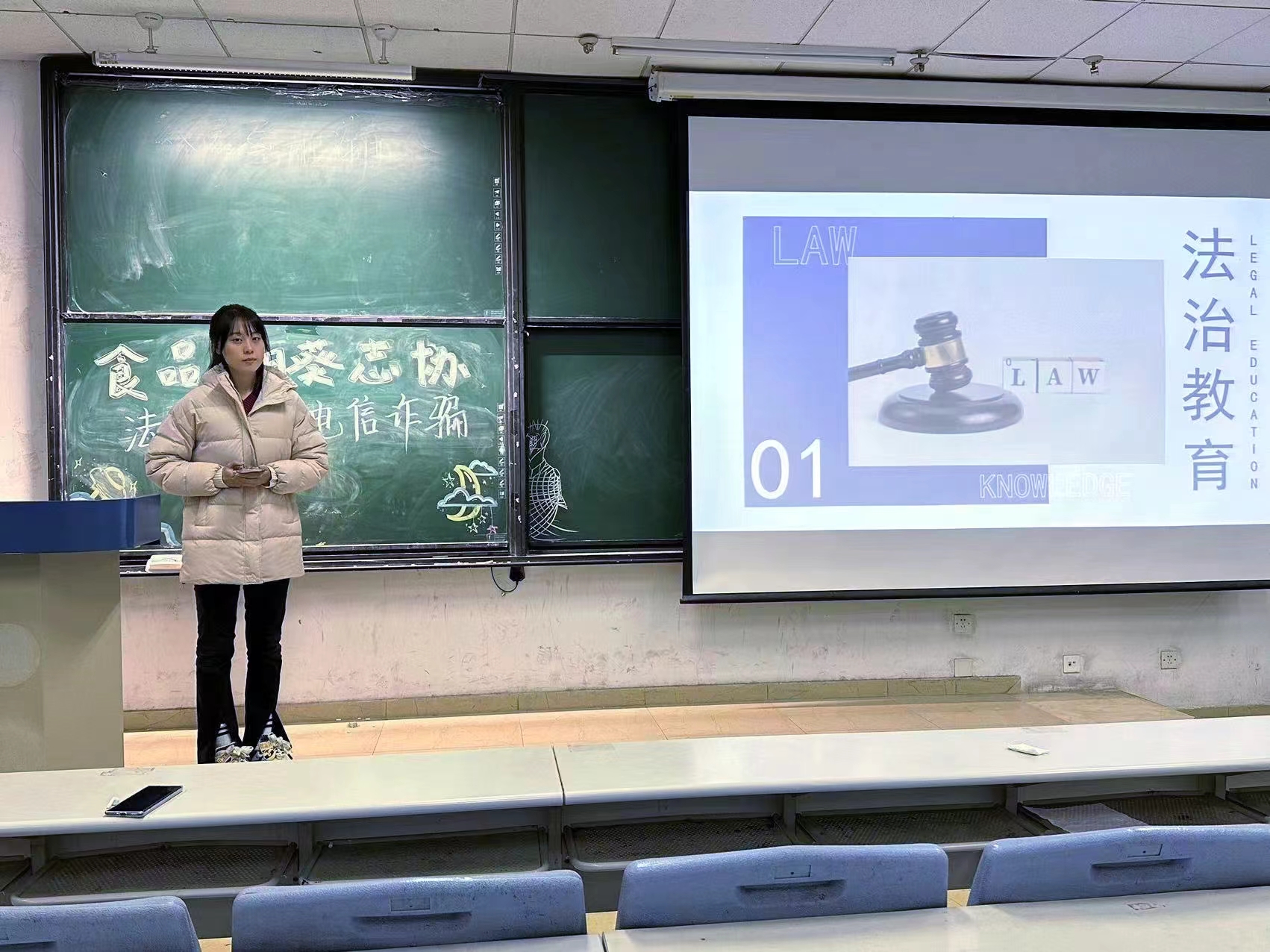 为进一步提高食品科学与工程学院学生防范各类电信网络诈骗安全意识,持续增强法治教育,弘扬法治精神,食品科学与工程学院向日葵青年志愿者协会于11月11日18:30在中院9号楼2阶教室召开了法治教育、电信诈骗教育及诚信教育主题讲座。