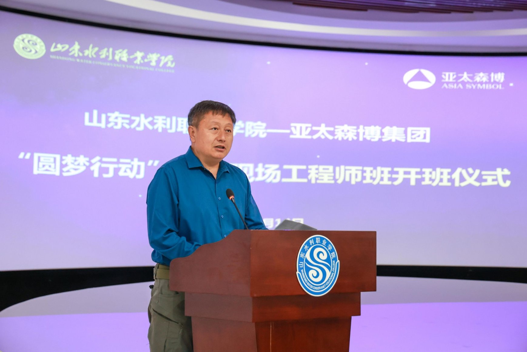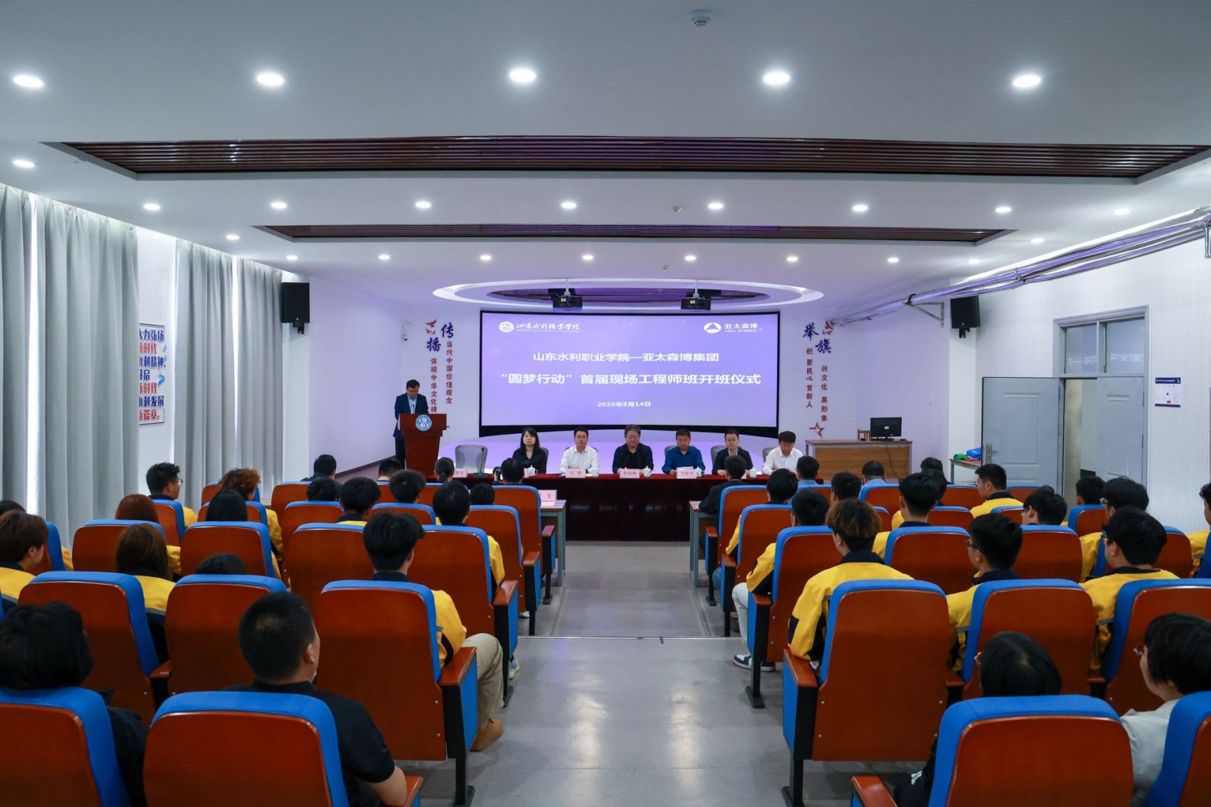 为深入贯彻落实学校第四次党代会精神,深化校校、校企合作交流,积极构建“先锋生态”,扎实落实“访企拓岗促就业”专项行动,5月14日上午,由天津科技大学轻工科学与工程学院承接制浆造纸课程培训,亚太森博(山东)浆纸有限公司与山东水利职业学院合作共办的“圆梦行动”首届现场工程师班开班仪式在山东水利职业学院隆重举行。亚太森博(山东)浆纸有限公司党委书记李润明,山东水利职业学院党委书记王维,天津科技大学轻工科学与工程学院党委书记苟军平、院长刘洪斌出席活动,三方有关部门负责人、教师代表和30名首届“亚太森博现场工程师班”学生参加活动。
