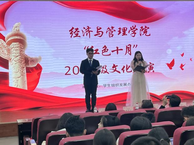 为了歌颂伟大祖国,弘扬爱国主义和奋发向上的时代精神,经济与管理学院学生组织发展办公室于2023年10月-11月面向2023级学生举办了“红色十月”文化展演活动。