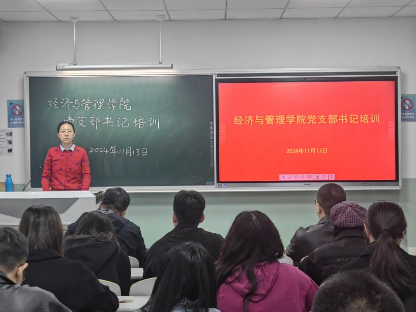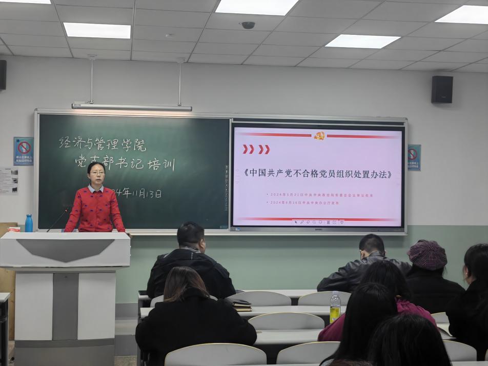 为进一步提升党支部书记的党务工作能力,确保支部工作规范有序开展,经济与管理学院精心筹备并于2024年11月13日在河西校区18-301教室举办了一场党支部书记专题培训。此次培训由学院专职组织员张一担任主讲。