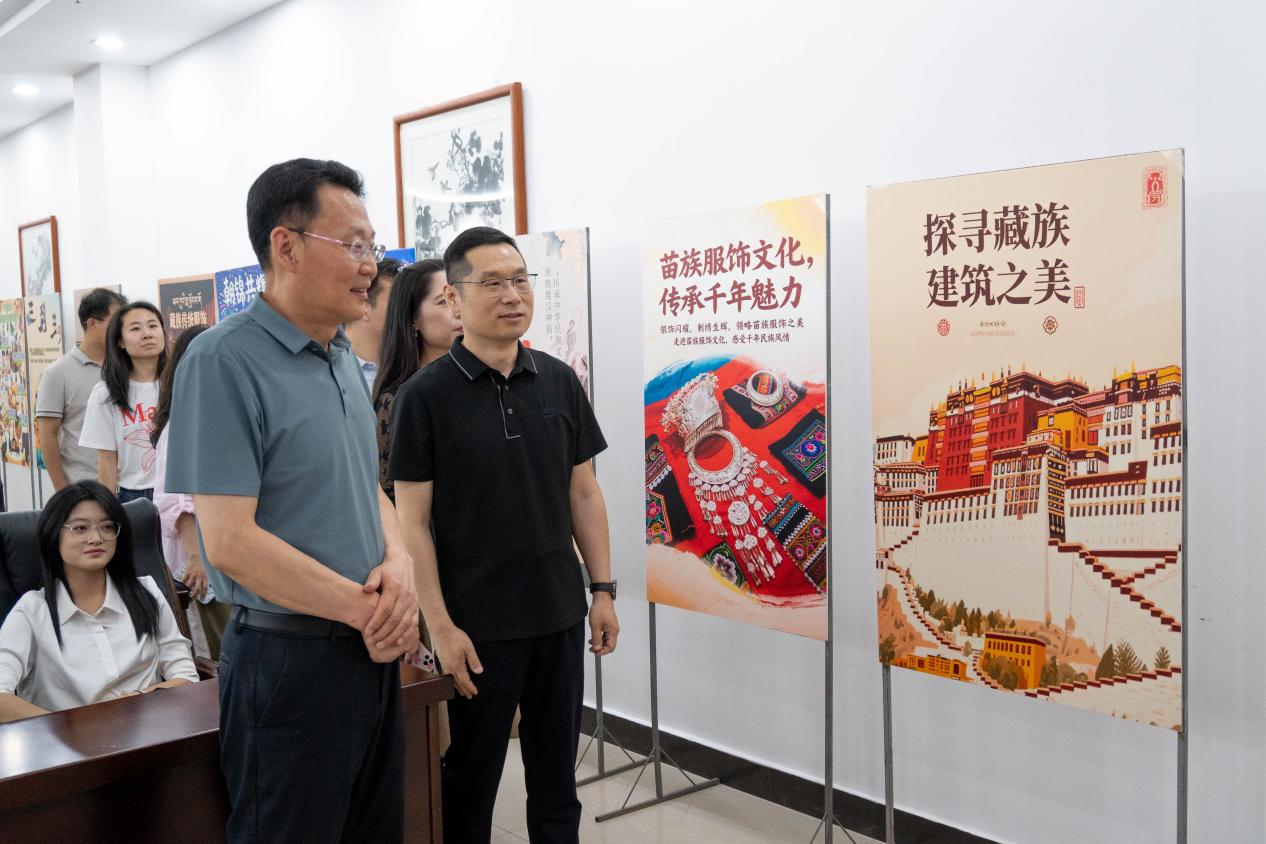 活动伊始,评委们集中参观了海报展示区,一副副五彩斑斓、内涵深刻的海报不仅图文并茂地展示了各民族的多元文化,更体现了学生以文载道、以图抒意,将铸牢中华民族共同体意识融入艺术创作,一派各美其美,美美与共的视觉盛宴。