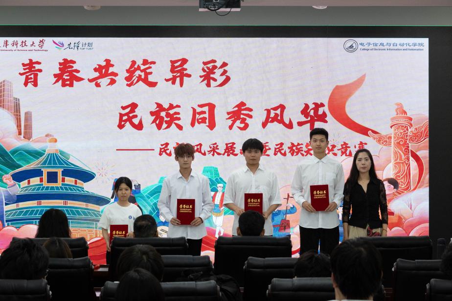 为积极响应学校“先锋计划”的号召,推动各民族学生交流融合,强化民族团结教育,6月13日,电子信息与自动化学院面向各民族大学生骨干培训班学员,精心策划并举办了“青春共绽异彩,民族同秀风华”民族风采展示暨民族知识竞赛活动。此次活动以丰富多样的形式,为同学们搭建了了解民族文化、增进民族情谊的平台,吸引众多师生参与,现场气氛热烈非凡。党委常委、统战部部长郑运旺,学院党委副书记闫寒,学院团委书记、学生工作办公室主任尹娜及各年级辅导员老师出席活动并担任现场评委。