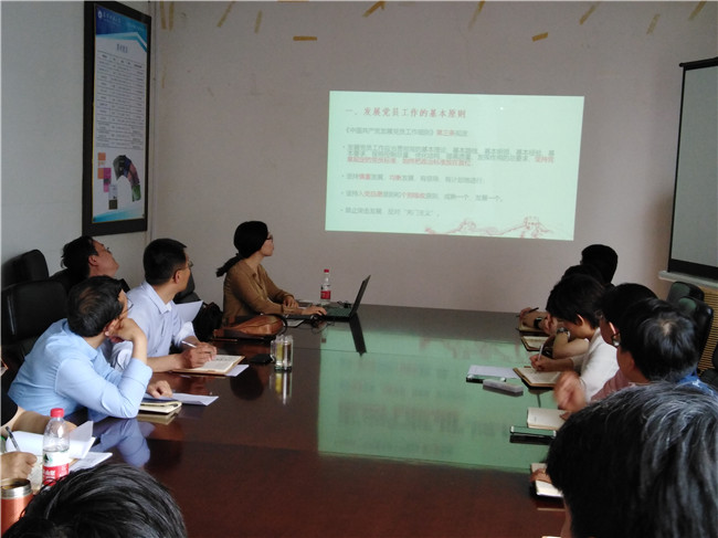 王严老师结合本人参加学校相关培训的学习心得,为与会人员进行了培训,主要培训内容有党员发展每个阶段的要求和每个阶段党员材料填写的规范。王严老师通过实际材料和PPT展示,为与会人员进行了充分而又形象的讲解。
