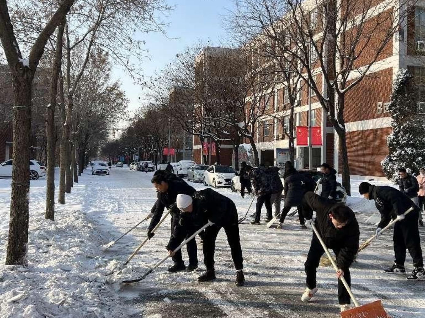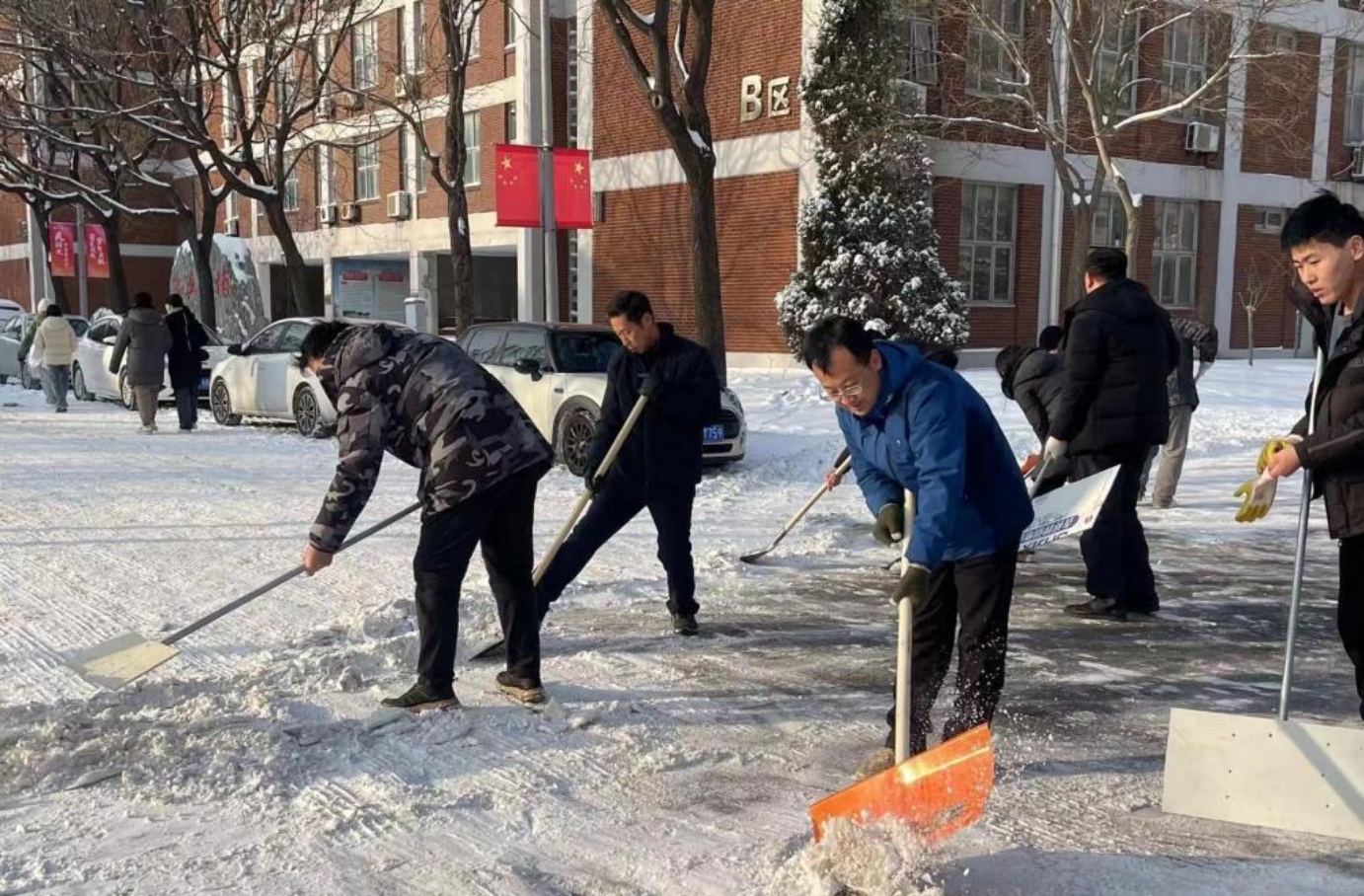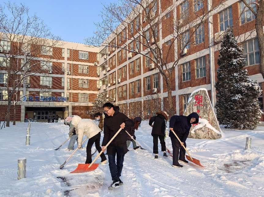 为深入贯彻党的教育方针,大力弘扬劳动精神,切实保障师生安全出行,化工与材料学院以雪情为命令,于12月15日清晨开展“我为群众办实事,破冰除雪践初心”劳动教育主题党日活动,学院领导班子带头,百余名专业教师、学生党员齐上阵清除冰雪。