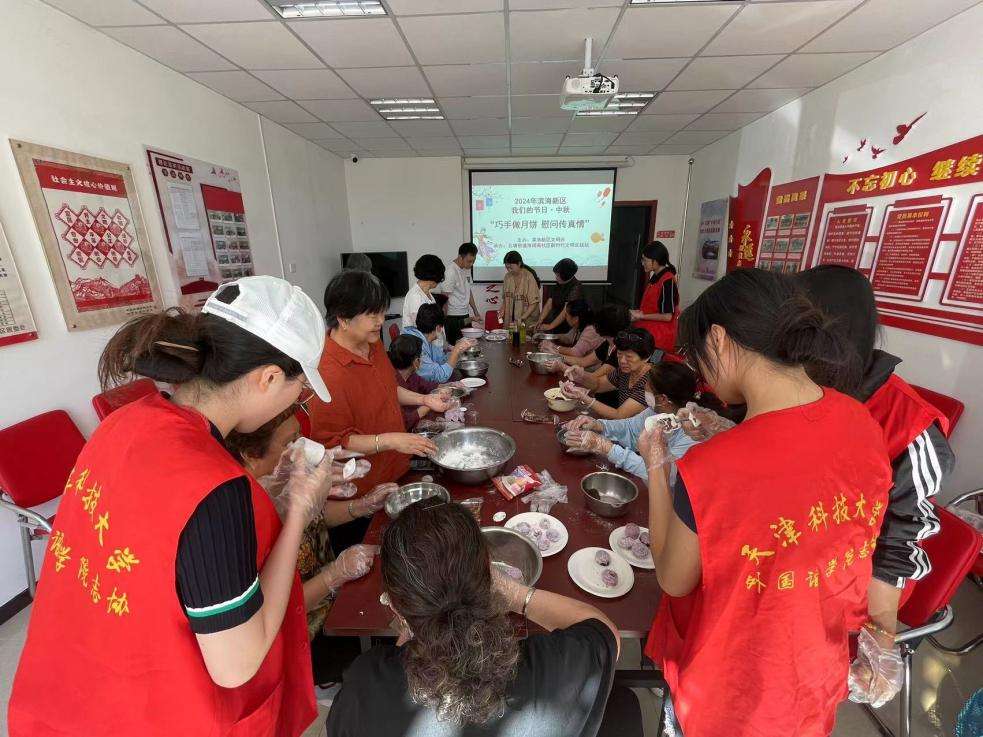 秋意已浓,中秋将至。为进一步弘扬中华优秀传统文化,营造浓厚的中秋氛围,引导广大群众热爱传统节日、尊重传统节日、过好传统节日,天津科技大学外国语学院逐光实践队带着温暖与关怀,走进了北塘海阔苑社区,参加了冰皮月饼制作活动,并为社区的老人们送去了节日的慰问。