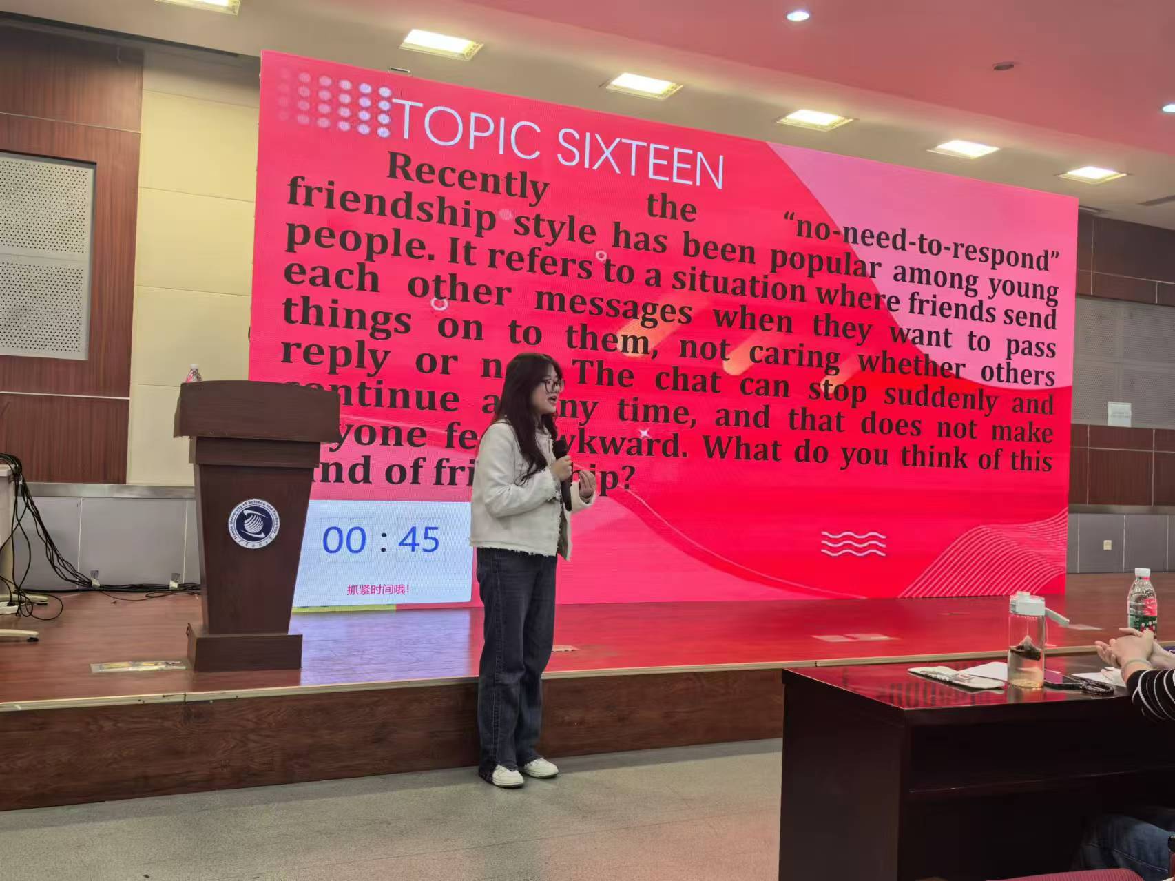 此次比赛由张玮、陈幼云、李莉、王尤佳四位老师担任评委。比赛中,选手们精神饱满、声情并茂,以流利的英语和自信的姿态展现自我。他们或慷慨激昂、或沉稳大气、风格各异。评委老师们全程认真聆听每位选手的精彩演讲,并进行了细致入微的评估。