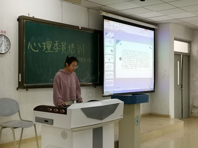 会议初,由聆心社副部长于静雯介绍会议的大致内容,而后由聆心社宣传部副部长柴秋雨指出心理委员的工作内容和心理委员的素质品质的要求,其中她指出一名合格的心理委员要做到乐于助人,积极向上,真诚相待,身心成熟健全,乐于倾听和思维方式科学等。