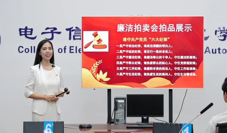 “同学们,今天我们要参加一场关于文化的拍卖会,很新奇吧?待会我们会展出很多关于文化的展品,你们一定要认真思考,还要眼疾手快,我们一起来见证谁是这场拍卖的最后赢家!”在电信学院,一场关于文化的“拍卖会”正在紧张进行中。团委书记尹娜老师化身“拍卖师”,将“先锋文化”拆解成若干个学习主题,每个主题通过不同形式为学生进行宣讲,而这次就是以拍卖的形式宣讲“先锋文化之廉洁文化”。她说:“其实这次活动是一次创新,先锋文化24字具有丰富的内涵和外延,对科大学子成为先锋青年大有裨益,我想通过不一样的方式让学生乐学善学会学,学有所得、学以致用,于是,就把党课课堂设置成了拍卖现场,没想到同学们积极性可高了,效果很不错。以后,我还会继续创新育人方式,在本职岗位上争创一流、争做先锋。”