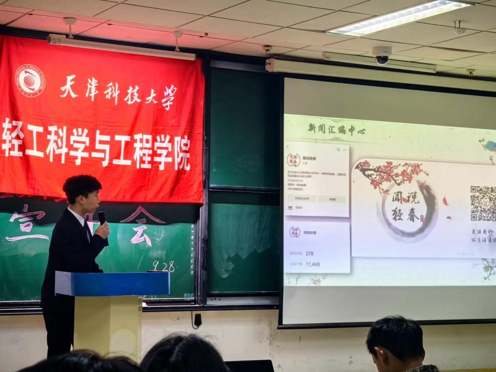 为增强新生对学院团委、学生会及各学生社团的了解,夯实学生骨干队伍建设,9月28日晚,轻工学院团委、学生会在图书馆第三阶梯教室开展了纳新宣讲活动。各团学组织负责同学结合工作实际,从部门概况、成员介绍、职责功能、成果总结等多方面详细地向在场新生进行了介绍,通过展板展示、现场表演等形式,向新生展示了各自的特色和风采。新生们根据自己的兴趣和爱好,积极与各团学组织负责同学交流互动,了解社团的活动内容和加入条件。通过此次宣讲会,新生们不仅找到了展示自己的舞台,还结识了一群志同道合的朋友,激发了新生加入团学组织施展才华、服务同学的热情,为学院学生工作发展注入了新动能。