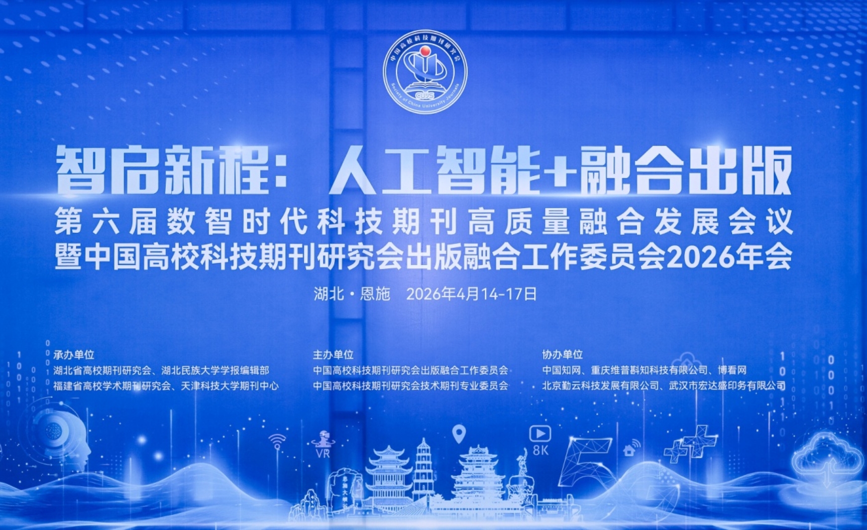 2026年4月14日至17日,第六届数智时代科技期刊高质量融合发展会议暨中国高校科技期刊研究会出版融合工作委员会2026年学术会议在湖北恩施举行。本次会议以“智启新程:人工智能+融合出版”为主题,由中国高校科技期刊研究会出版融合工作委员会、技术期刊专业委员会联合主办,天津科技大学期刊中心与湖北省高校期刊研究会、湖北民族大学学报编辑部、福建省高校学术期刊研究会共同承办,多家行业单位协办。来自全国高校科技期刊界的专家学者、编辑同仁及行业代表齐聚“世界硒都”,共话人工智能时代科技期刊融合创新的新路径、新生态。