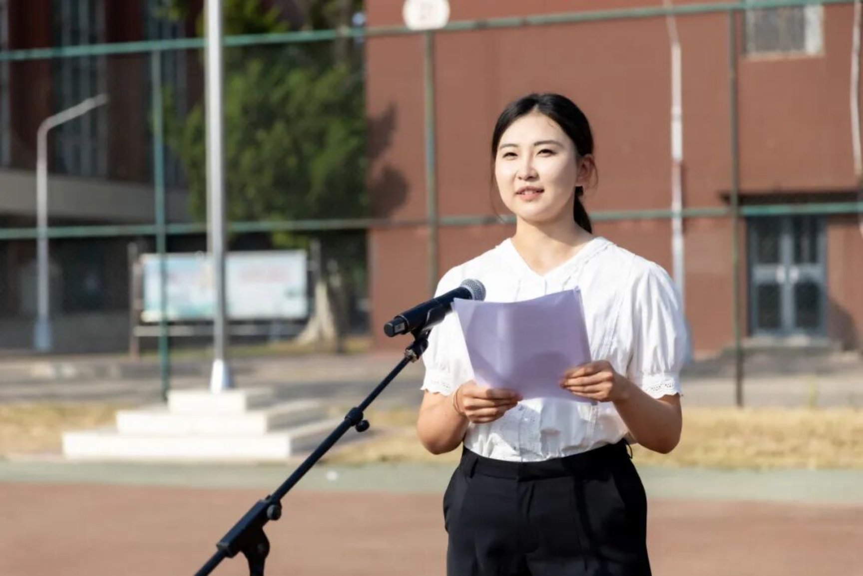 来自新疆的哈萨克族学生萨娅作为学生代表,在国旗下分享了自己的成长感悟与入学心声。“作为一名2025级新生,能成为天津科技大学高质量内涵发展的见证者和参与者,我感到十分荣幸。”萨娅动情地说,入学一个月来,学校的暖心关怀、老师的悉心指导、同学的热情帮助,让她快速适应了大学生活,找到了“家一般的归属感”。“今天站在五星红旗下迎国庆、启新程,看着五星红旗高高飘扬,我对‘中华民族一家亲、同心共筑中国梦’有了更真切的感悟。未来我会努力学习专业知识,用实际行动为民族团结和国家发展贡献青春力量。”她的分享真挚动人,引发了现场师生的强烈共鸣。