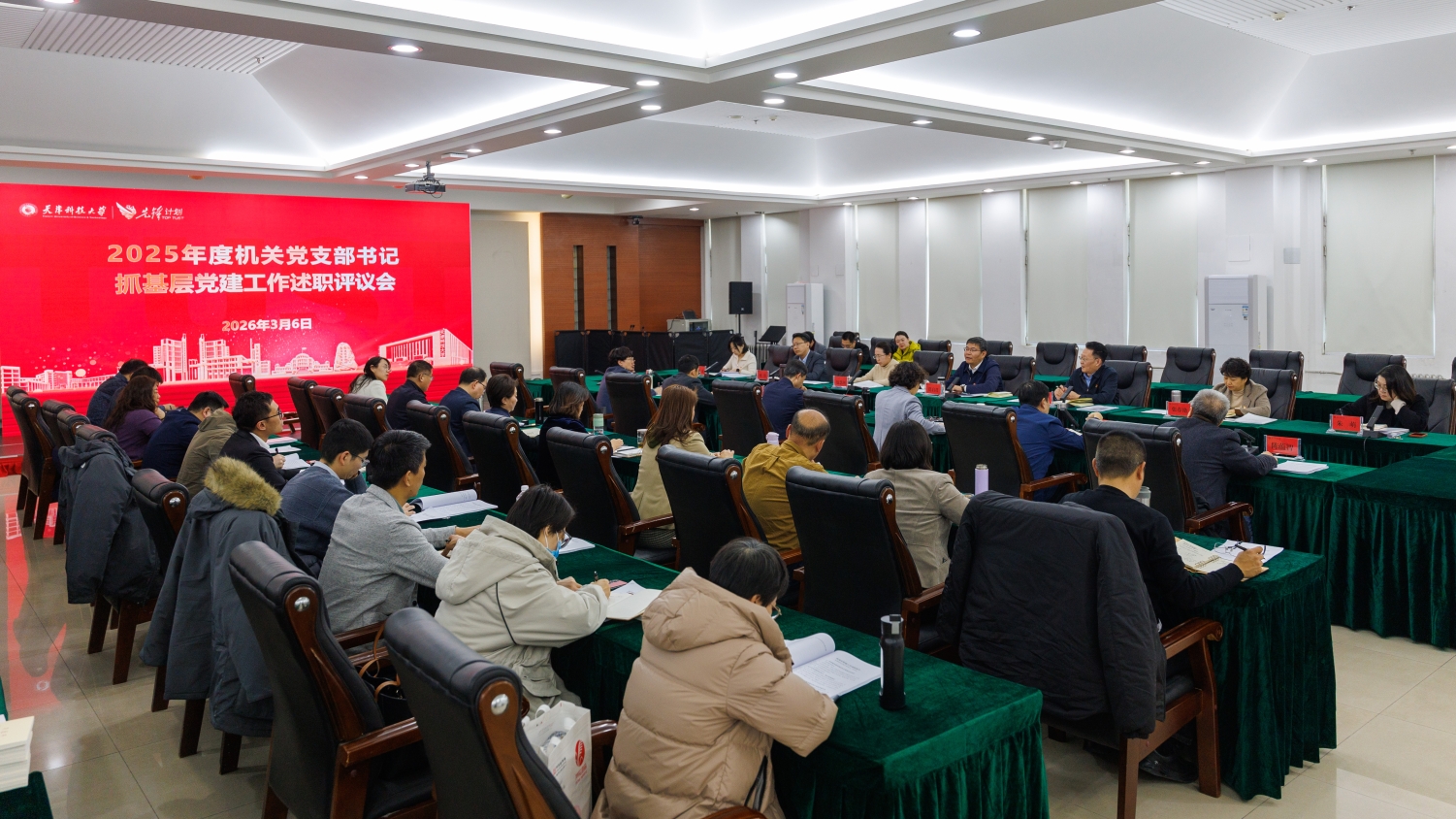 按照校党委2025年度党组织书记抓基层党建述职评议考核工作部署,近日,机关党委在言泉楼七楼报告厅召开2025年度党支部书记抓基层党建工作述职评议会。校党委副书记贾启君出席会议并讲话。艺术设计学院纪委书记包慧珂作为督导全程列席会议。基层师生代表,机关“两委”委员、党支部书记、党员代表60余人参加会议。会议由机关党委负责同志主持。