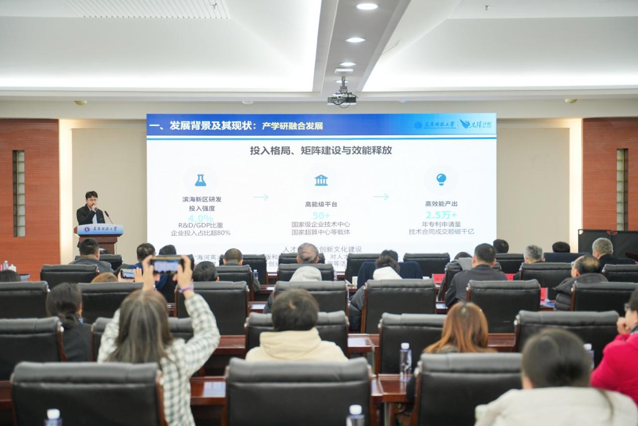 论坛上,天津科技大学机械工程学院发布了《滨海新区先进制造业发展现状分析报告》,报告围绕滨海新区先进制造业发展背景,主要领域发展情况以及产教融合现状进行分析汇报,为产学研协同发展提供数据支撑。