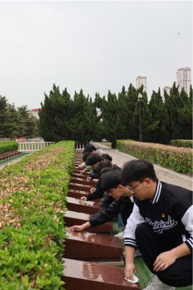 接着,党员们来到“8.12”特大火灾爆炸事故牺牲烈士墓区,为在大港特大爆炸事件中不惜献出自己的生命去挽救人民的英雄们扫墓。支部党员们纷纷表示,烈士们英勇献身的精神至今深深感动着大家,学生党员在新时代也应该传承这种精神,为争取人民幸福安康不惜一切代价。党员们怀着沉重的心情轻轻地擦拭着墓碑上的灰尘,深深地铭记着墓碑上英雄烈士们的名字。