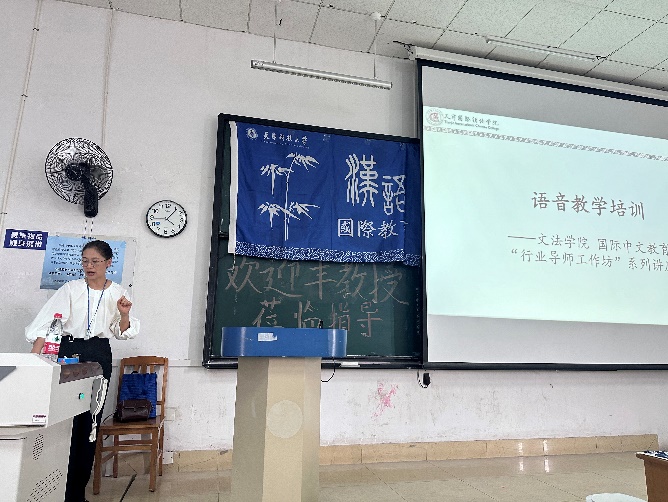 丰琨老师先结合真实教学案例与教学实践经历,从外国学生语音偏误产生的原因、中文教师应具备的语音知识基本功、正确的纠音技巧及汉语拼音教学四个方面做了国际中文语音教学的指导和培训。之后,丰老师分享了国际中文语音教学操练的案例,高度概括了语音教学的提问技巧与备课方法。丰老师的讲解清晰流畅,案例真实贴切,分析透彻易懂。现场学习氛围浓厚,师生互动活跃。