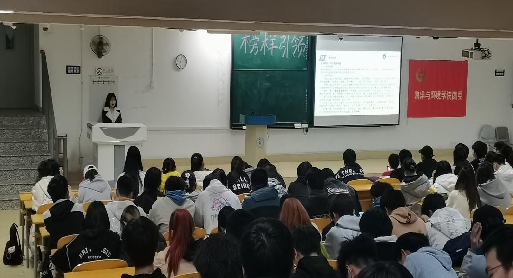 为鼓励同学们在大学生涯中积极进取,拼搏奋斗,营造共同成长,团结融洽的学习生活氛围,海洋与环境学院团委充分发挥榜样力量,4月6日在图书馆阶梯教室开展本学期第一期“学习青春好榜样”主题宣讲活动。