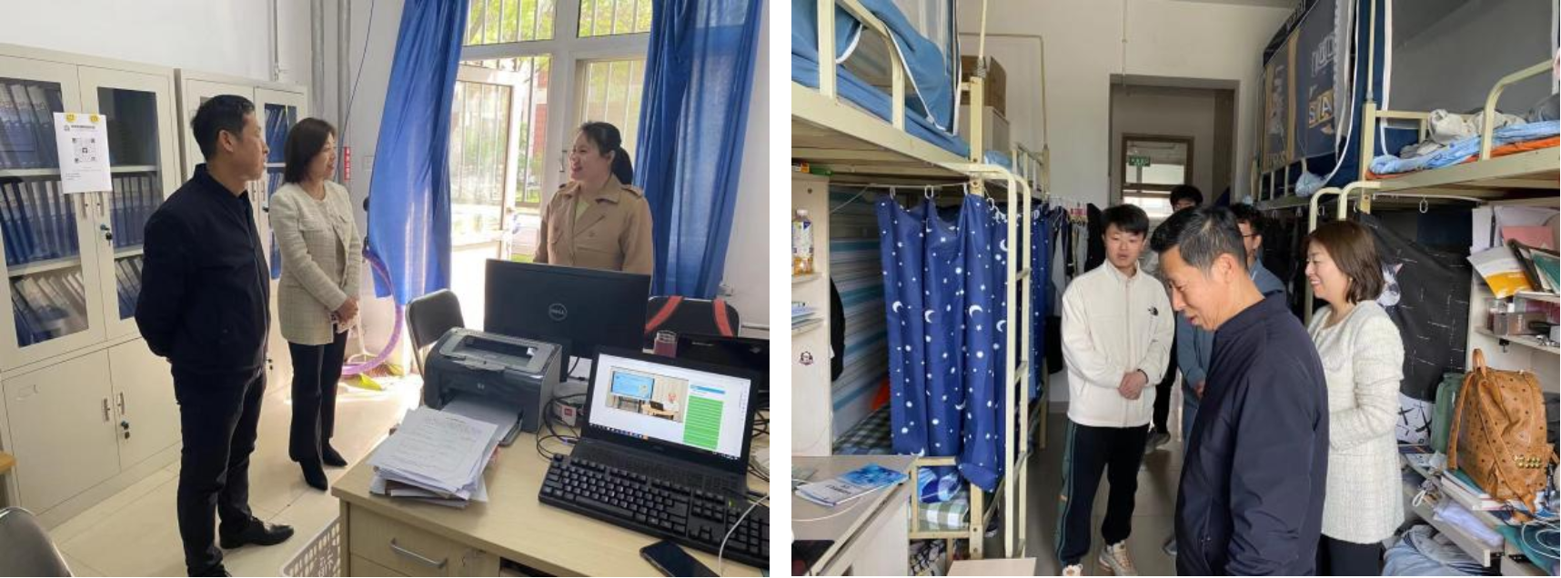 学院党委高度重视安全教育工作,始终把学生安全摆在首位。五一假期来临之际,党委书记崔永岩、党委副书记王慧带领全体辅导员深入学生宿舍走访慰问,认真排查安全风险隐患。学院领导来到辅导员工作站详细了解目前工作站的建设情况和辅导员们的工作状况,并勉励辅导员们以“一站式学生服务社区”建设为契机,主动创新工作。在宿舍和同学们的亲切交谈中,叮嘱同学们要合理规划五一假期,时刻把自己人身财产安全放在第一位,牢固树立安全意识,规范使用电器,保持宿舍卫生清洁,营造良好的学习生活氛围。