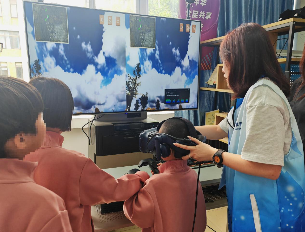 在讲解参观过程中,小朋友们与讲解员积极互动,于良好的问答模式中深入了解了各个科研产品的技术内涵及应用场景,然后,小朋友们在“瀚海星云”展区按次序一一体验了我院特色VR技术——中草药虚拟教学系统,从而亲身体验并加深了对我院科普教育成果的了解。随后,讲解员又详细地为小朋友们介绍了由人工智能学院师生自主创作的相关作品如:“基于双目视觉的三维智能感知系统”“智能安防设备”“智慧盲犬”等。
