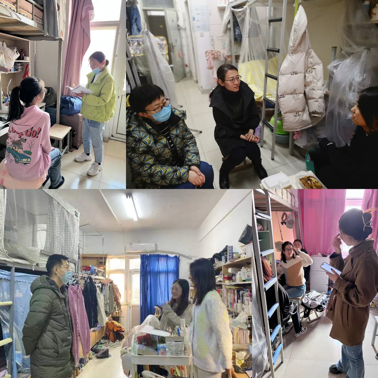 辅导员们了解了同学们的基本情况,并对大家的学习规划进行询问,同时对大家的疑问进行解答。在走访过程中,学院领导和同学们促膝交谈,并关心毕业生的考研情况,同时鼓励大家积极抓住春招机会找寻合适的就业岗位,与此同时关心大家的身体和心理健康,鼓励大家进行适当的户外运动。辅导员老师不仅了解同学们的学习情况,还询问大家生活上的困难,以及开学季的心理状态,及时解答同学们对开学季的课程安排、校园管理、外出请假等的困惑和疑问。