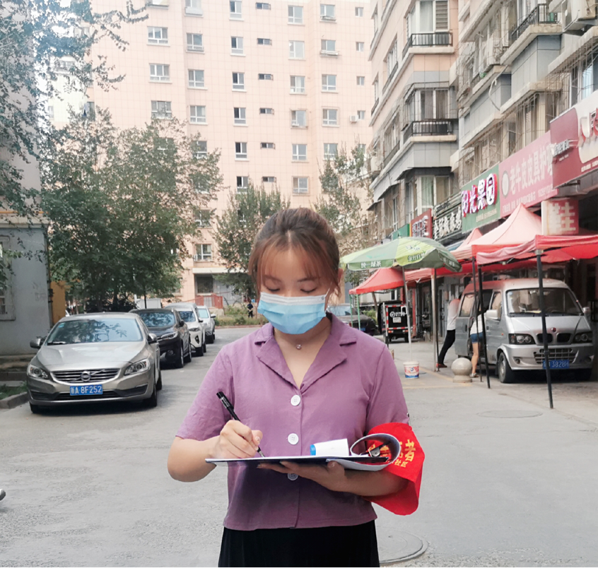 耐心细致,积极主动:除保质保量完成数据统计、体温测量、政策宣传等基础工作,他积极思考、主动作为,深入居民群体了解实际困难和需求,及时向社区居委会反映情况。为降低疫情感染风险、保障居民健康安全,他不厌其烦的对小区居民进行政策宣讲和耐心劝导。针对高龄居民,他转换工作思路,主动提供上门服务和物质配送,切实解决老年居民的实际困难。她耐心细致、认真负责的工作换来了实践单位和小区居民的一致好评,并为当代青年学生树立优秀典范。
